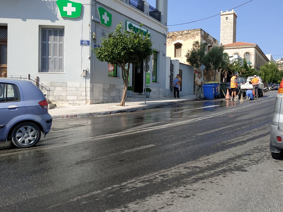 Εκτεταμένη διαρροή παρουσίασε το πρωί της Τετάρτης σωλήνας στην οδό Γεωργίου Παπανδρέου (έναντι του Γενικού Νοσοκομείου Σύρου), με αποτέλεσμα αρκετά κυβικά νερού να διαφύγουν προς το οδόστρωμα.