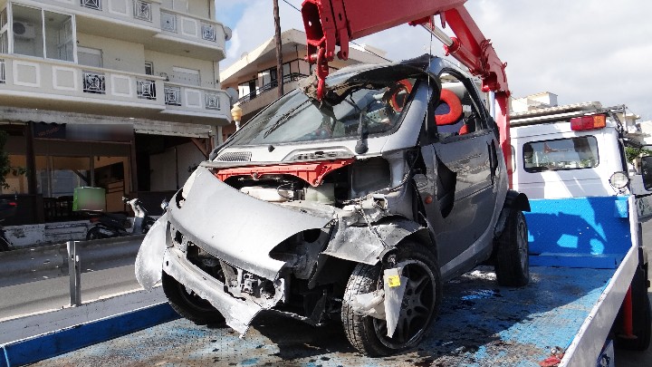 Πρόκειται για τη Σταματία Δημητρά του Στέργου, η οποία έχασε τον έλεγχο του διθέσιου Smart που οδηγούσε, κινούμενη από το Καρακόνερο προς το πάρκο Ροδινιού.