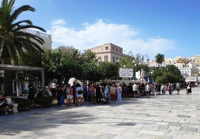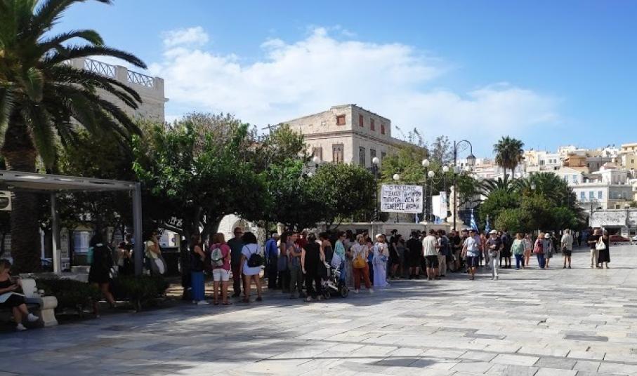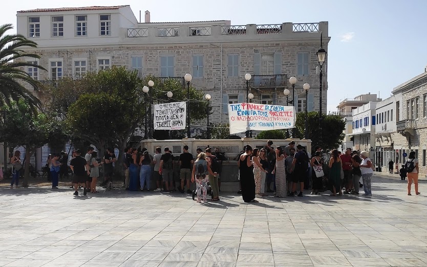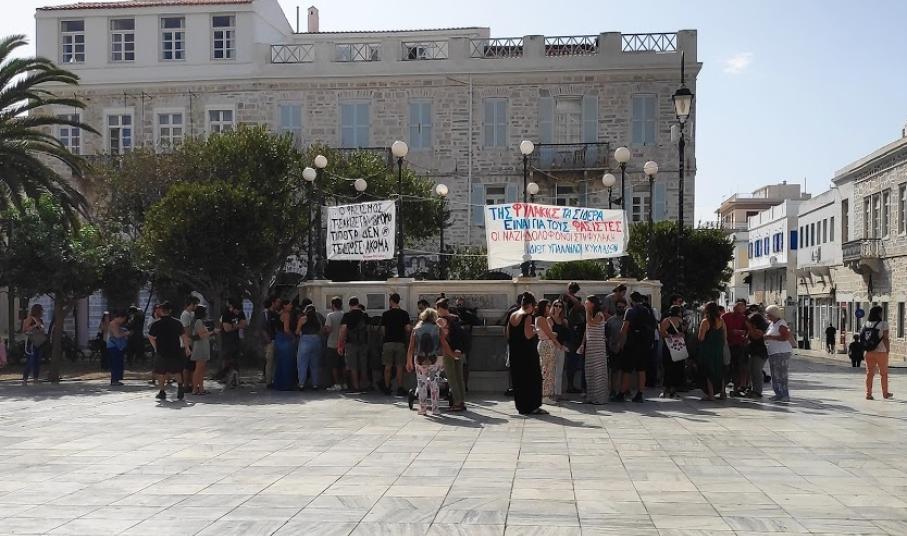 Δεκάδες πολίτες συγκεντρώθηκαν στην πλατεία Μιαούλη της Ερμούπολης, στο πλαίσιο των πανελλαδικών συγκεντρώσεων που έλαβαν χώρα, ενόψει της ανακοίνωσης της απόφασης σχετικά με τη δολοφονία του Παύλου Φύσσα και την εγκληματική δράση της Χρυσής Αυγής, με κεντρικό σύνθημα «Δεν Είναι Αθώοι».