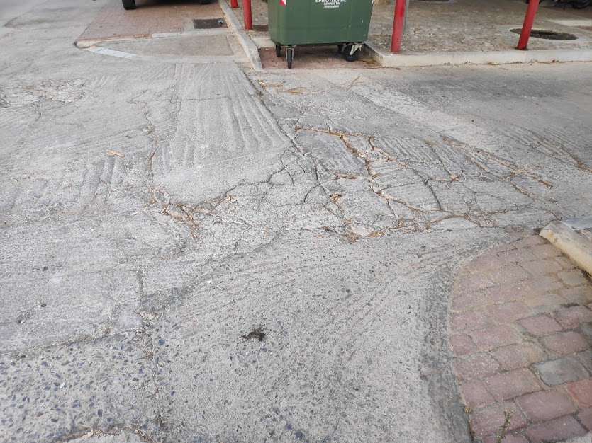 Όπως είναι εμφανές, το οδόστρωμα εμφανίζει πολλές και βαθιές λακκούβες, είναι σπασμένο σε αρκετά σημεία, ενώ επίσης υπάρχουν καθιζήσεις, οι οποίες χρήζουν άμεσης αποκατάστασης, προκειμένου να αναβαθμιστεί η εικόνα της περιοχής, η οποία φαίνεται αρκετά παραμελημένη, αλλά και η ασφάλεια οδηγών και πεζών, οι οποίοι είναι πολλοί και όλων των ηλικιών.