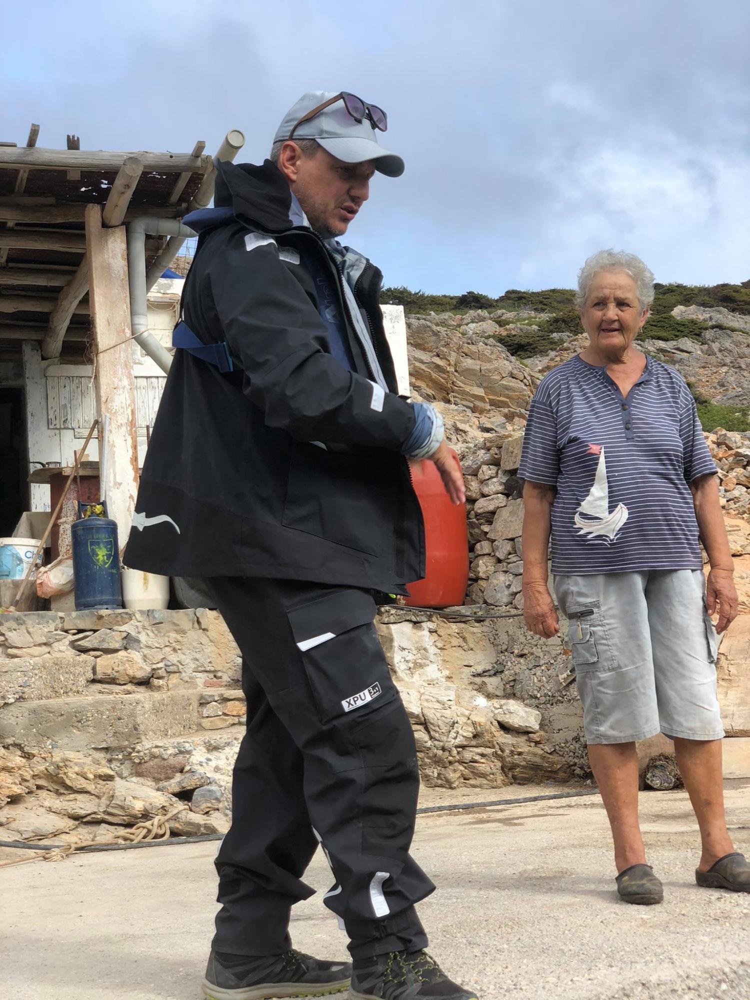 Η κυρά Ρηνιώ, όπως είναι γνωστή στο πανελλήνιο και όχι μόνο, υποδέχτηκε με χαρά το φουσκωτό σκάφος που ξεκίνησε από το νησί της Σύρου και διένυσε συνολικά 160 ναυτικά μίλια για να προσφέρει προμήθειες, αλλά και φάρμακα για τα ζώα που η ίδια εκτρέφει.