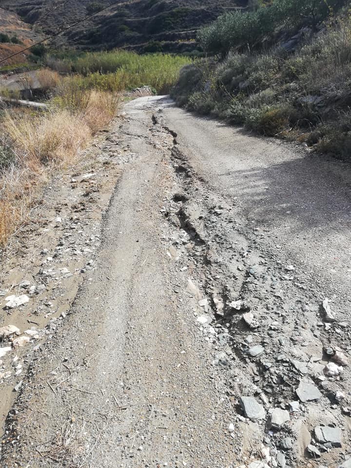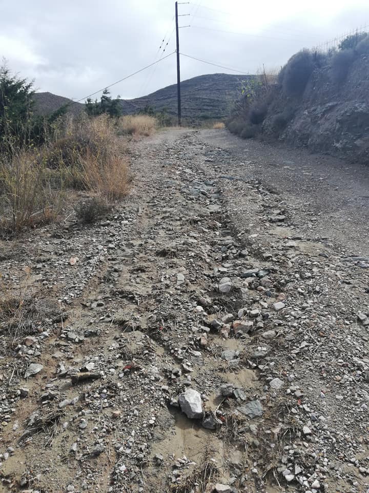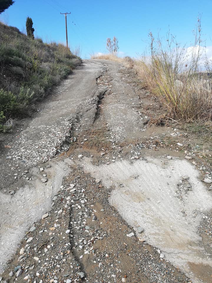 Όπως φαίνεται και από το φωτογραφικό υλικό, σε πολλά σημεία το σκυρόδεμα έχει καταστραφεί σχεδόν ολοσχερώς, σχηματίζοντας πολύ επικίνδυνες στρεβλώσεις, παρά το γεγονός, ότι είχε συντηρηθεί σχετικά πρόσφατα. Παράλληλα, ένα μέρος του δρόμου, όπου υπάρχει επίστρωση με χώμα, έχει υποστεί επίσης φθορές, με αποτέλεσμα να υπάρχει σοβαρός κίνδυνος για τα διερχόμενα οχήματα, ειδικά δε τις ημέρες που σημειώνονται βροχοπτώσεις.