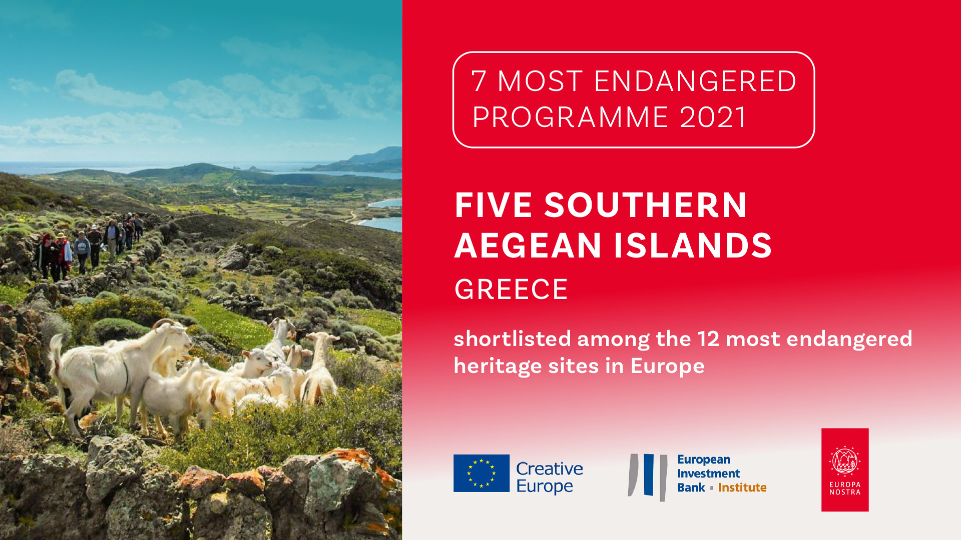 Η Europa Nostra – η ευρωπαϊκή φωνή της κοινωνίας των πολιτών αφοσιωμένη στην πολιτιστική και φυσική κληρονομιά – και ο εταίρος της, το Ινστιτούτο της Ευρωπαϊκής Τράπεζας Επενδύσεων, ανακοίνωσαν τις 12 πιο απειλούμενες περιοχές πολιτιστικής κληρονομιάς στην Ευρώπη, που επιλέχθηκαν για το Πρόγραμμα “7 Υπό Απειλή” (7 MOST ENDANGERED) του 2021.