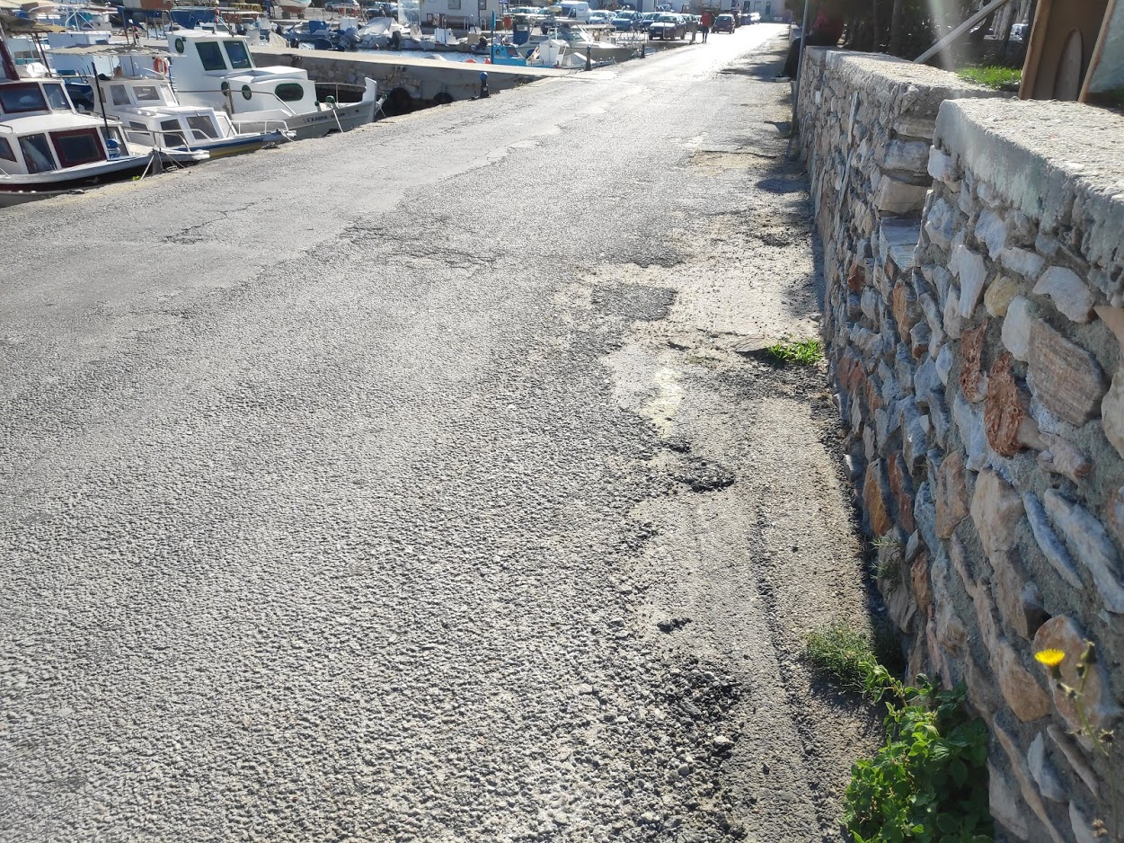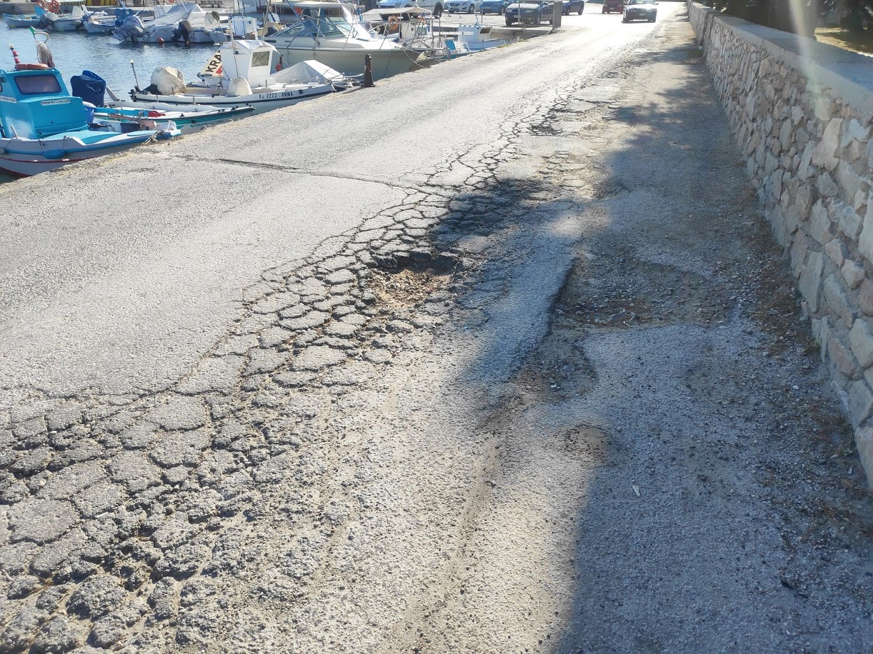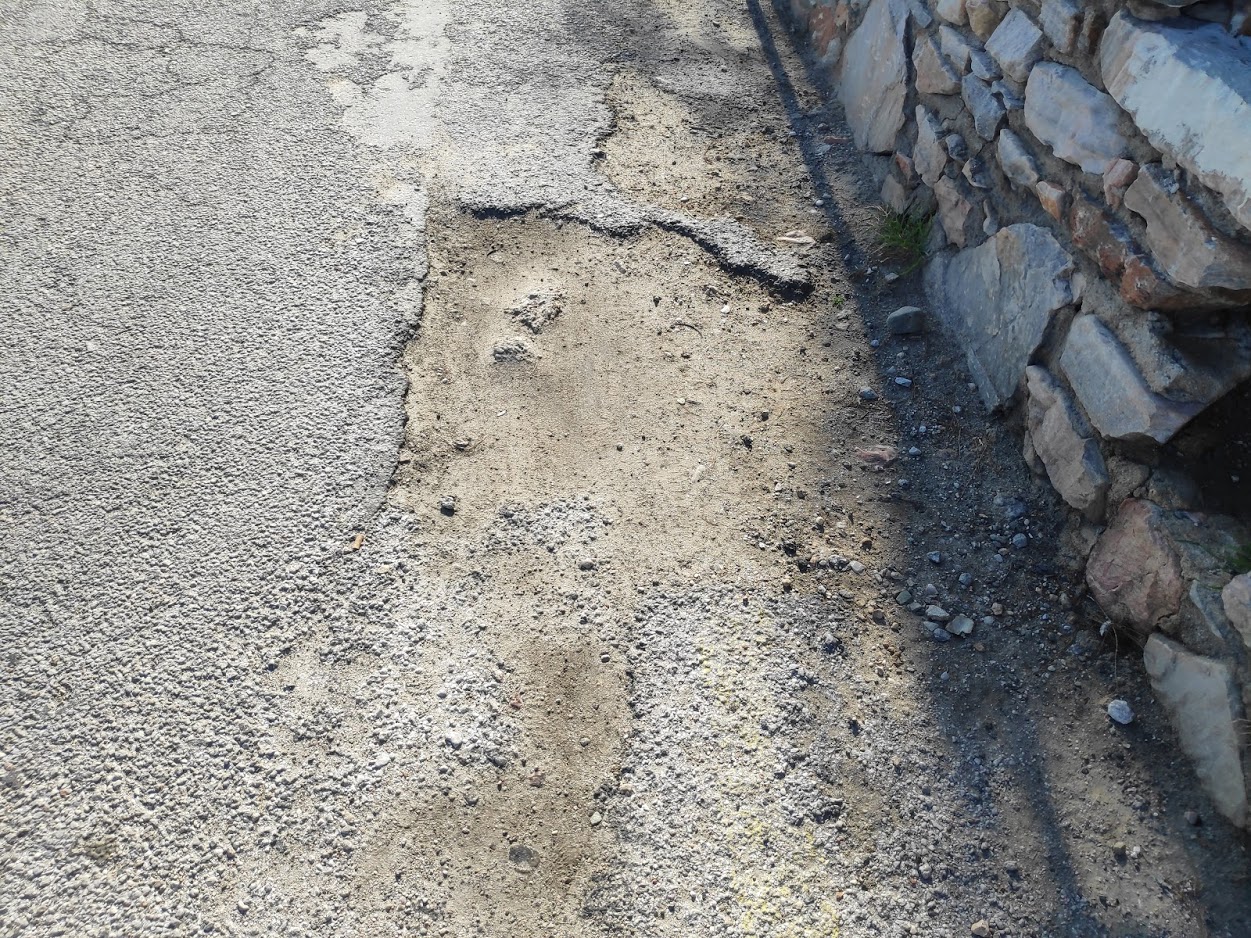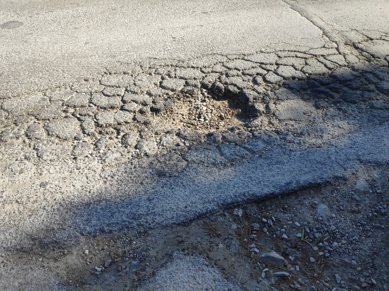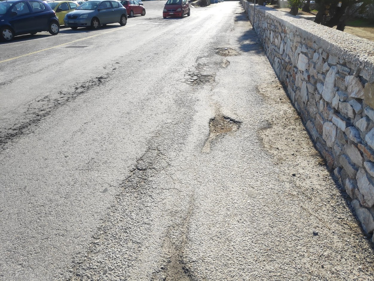 Μεγάλα τμήματα ασφάλτου έχουν αποκολληθεί, δημιουργώντας βαθιές λακκούβες, οι οποίες απειλούν με τραυματισμό τους πεζούς, με υλικές ζημιές τα οχήματα, αλλά και με ατυχήματα τους οδηγούς που διέρχονται του σημείου.