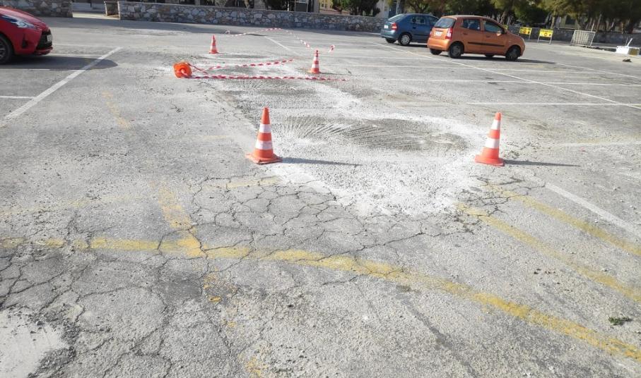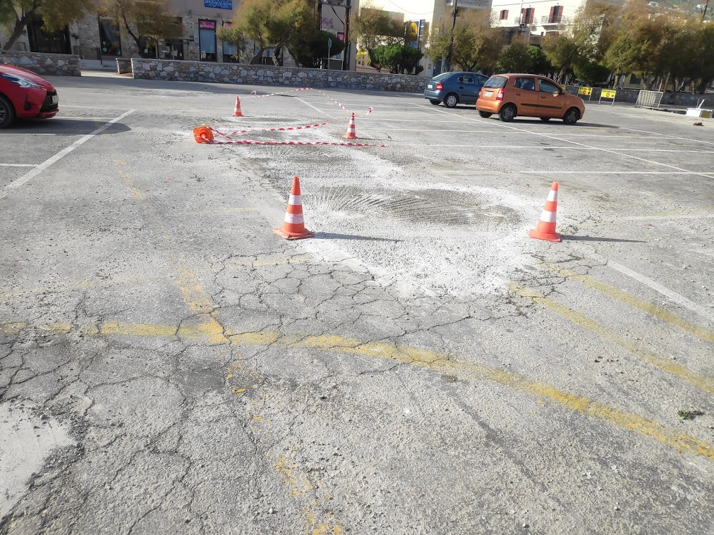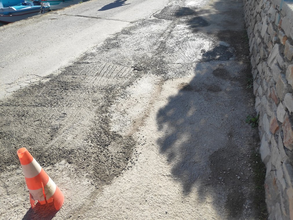 Με μπετόν καλύφθηκαν οι ιδιαίτερα επικίνδυνες λακκούβες που εμφάνιζε το οδόστρωμα της οδού Μ. Δουράτσου στο ύψος του νέου εμπορικού λιμένα της Ερμούπολης, αλλά και του δημοτικού χώρου στάθμευσης επί του ίδιου δρόμου.