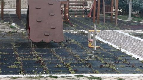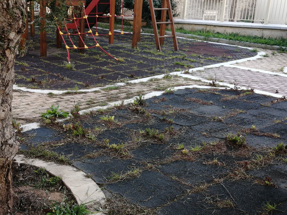 Πεσμένα φύλλα δέντρων, κλαδάκια και χόρτα που έχουν φυτρώσει στο ελαστικό δάπεδο ανάμεσα από τα παιχνίδια είναι η πρώτη εικόνα που θα αντικρίσει κανείς περνώντας μπροστά από την παιδική χαρά στην περιοχή της Μεταμόρφωσης. Μια εικόνα που μαζί με τους άδειους δρόμους και την απόλυτη ησυχία στο μεγαλύτερο μέρος της ημέρας εντείνει τη μελαγχολία αυτής της περιόδου αλλά και την ανυπομονησία του κόσμου για την επιστροφή στην κανονικότητα, ώστε ο τόπος να αποκτήσει και πάλι χρώμα, φωνή, ζωή.