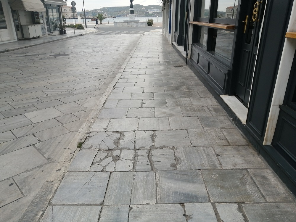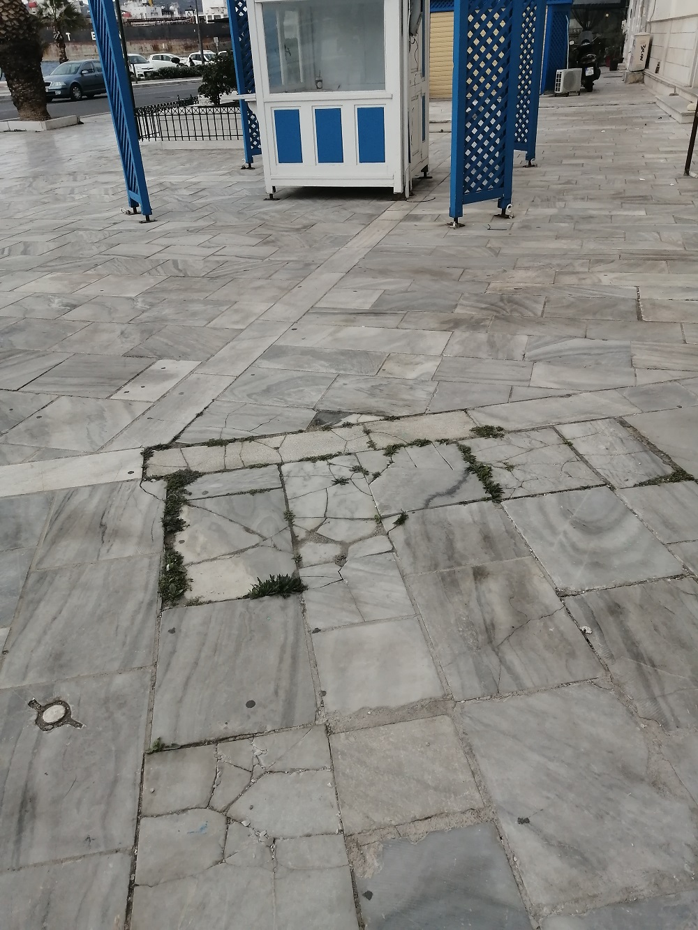 Αδιαμφισβήτητα, η Ερμούπολη συγκαταλέγεται στις πιο προσεγμένες και περιποιημένες πόλεις της χώρας, όπου καταβάλλονται συνεχείς προσπάθειες για να γίνει ακόμη πιο φιλική και ελκυστική για όλους. Ωστόσο, σπασμένες, ραγισμένες, ή βυθισμένες πλάκες σε πολυσύχναστα σημεία, όπως στα πεζοδρόμια κατά μήκος της παραλιακής οδού μέχρι και το λιμάνι αποτελούν φυσικές φθορές που παρατηρούνται σε κάθε πόλη και χρήζουν αποκατάστασης, προκειμένου να μην συσσωρευτούν και πληθύνουν, θαμπώνοντας έστω και σε ελάχιστο βαθμό αυτόν τον εντυπωσιακό «καθρέφτη».