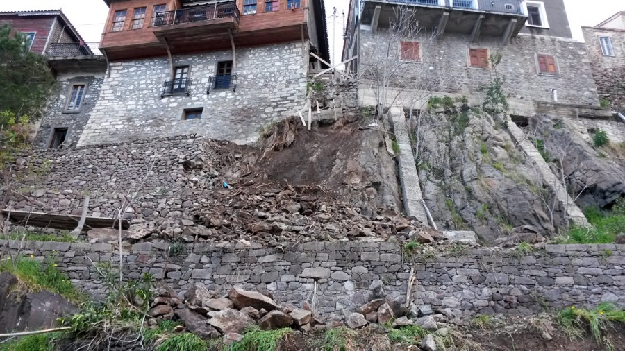Εξαιρετικά επικίνδυνο πρόβλημα στατικότητας του υπόβαθρου των βραχωδών πρανών του οικισμού της Μήθυμνας.