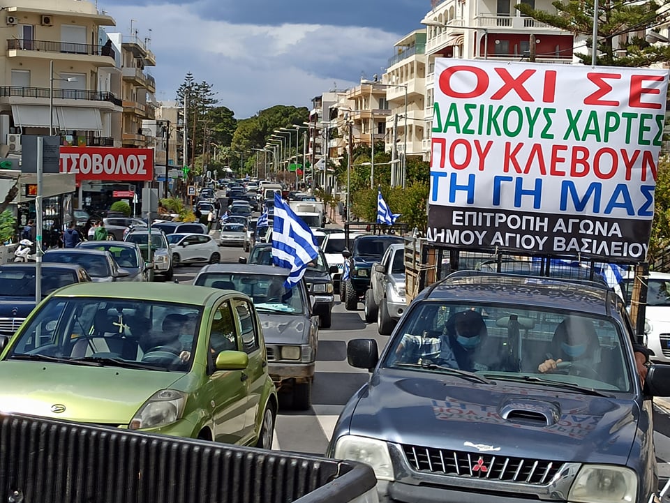 Πολύ μεγάλη ήταν συμμετοχή, μεγαλύτερη και του αναμενόμενου για τους διοργανωτές, στην κινητοποίηση για τους δασικούς χάρτες στο Ρέθυμνο. Οι διοργανωτές εκτίμησαν πως τα οχήματα που συμμετείχαν ήταν πάνω από δυο χιλιάδες και διπλάσιοι οι συμμετέχοντες πολίτες.