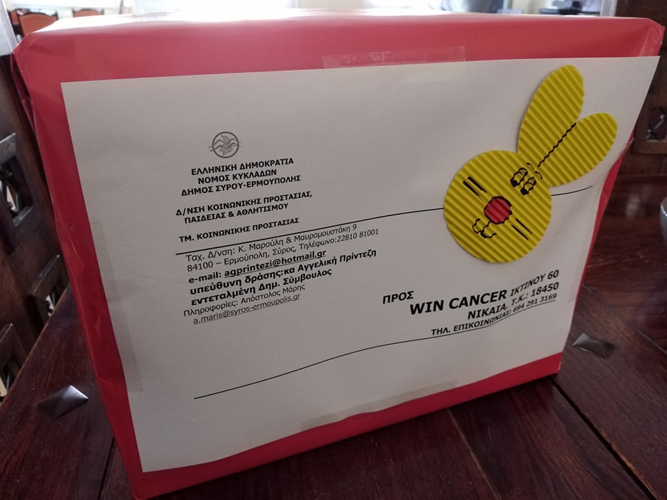 Σε αυτή την αποστολή, η Κοινωνική Υπηρεσία του Δήμου, αναγνωρίζοντας το μεγάλο έργο του Win Cancer πλαστικοποίησε ένα μέρος από τις κάρτες ώστε να απολυμανθούν και να διανεμηθούν ευκολότερα .