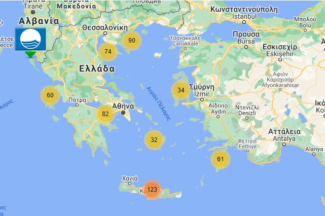 545 ελληνικές ακτές, 16 μαρίνες και 6 τουριστικά σκάφη βραβεύονται με τη Γαλάζια Σημαία για το 2021 σύμφωνα με τα όσα ανακοινώθηκαν μόλις από την Ελληνική Εταιρεία Προστασίας της Φύσης, που διαχειρίζεται το πρόγραμμα "Γαλάζια Σημαία".