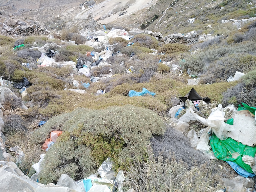 Όπως πολλοί από εσάς θα γνωρίζετε στην συγκεκριμένη περιοχή, ακριβώς πάνω από το ΧΥΤΑ, συντελείται μια καταστροφή του περιβάλλοντος άνευ προηγουμένου, αφού τα σκουπίδια που ο κάθε πολίτης φροντίζει να πετάει επιμελώς στους κάδους σκουπιδιών για να καταλήξουν στον ΧΥΤΑ… αυτά, λόγω αέρα αλλά και προφανώς λόγω κακής ή ελλιπούς λειτουργίας / διαχείρισης του ΧΥΤΑ βάσει της ιδιαιτερότητας των καιρικών συνθηκών που επικρατούν στις Κυκλάδες, καταλήγουν με τον αέρα στους λόφους και την θάλασσα.