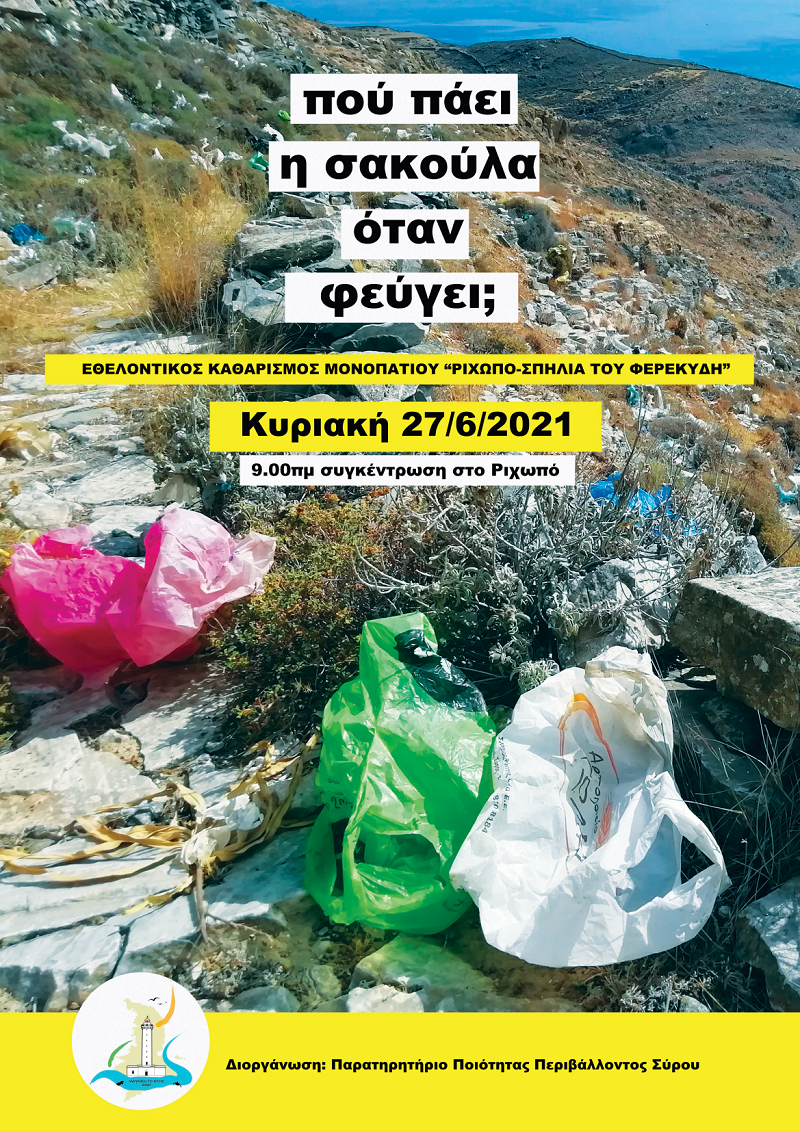 Ύστερα από την επιτυχημένη δράση καθαρισμού στις περιοχές Πανάχραντος, Πελεκανιά και Ανάσταση, είμαστε έτοιμοι για την δεύτερη δράση, αυτή τη φορά με πολύ μεγαλύτερο βαθμό δυσκολίας αλλά και ακόμα μεγαλύτερης σημασίας. Καλούμε τα μέλη, τους φίλους και κάθε πολίτη του νησιού σε εθελοντικό καθαρισμό της περιοχή γύρω από το μονοπάτι που οδηγεί στη σπηλιά του Φερεκύδη, με σημείο εκκίνησης το Ρηχωπό.