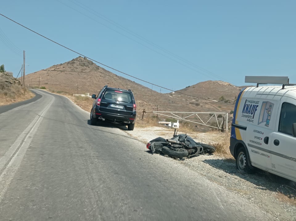 Σύμφωνα με ασφαλή πληροφόρηση της εφημερίδας, όχημα συγκρούστηκε με δίκυκλο, με αποτέλεσμα τον τραυματισμό του οδηγού της μηχανής. Άμεσα στο σημείο έσπευσε ασθενοφόρο όχημα του ΕΚΑΒ και ο οδηγός που τραυματίστηκε μεταφέρθηκε στο Γενικό Νοσοκομείο Σύρου.