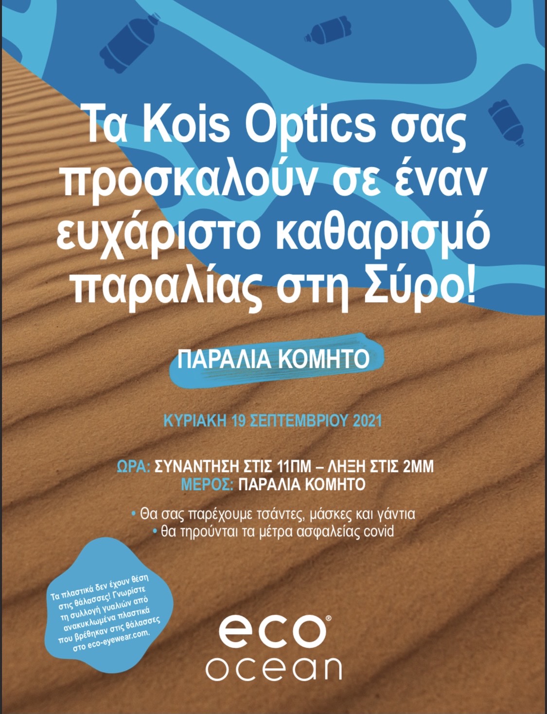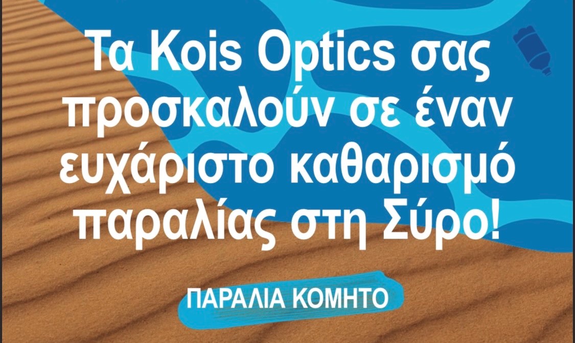 Τη Κυριακή 19/9 τα Kois Optics σε συνεργασία με την Eco Eyewear και τη βοήθεια εθελοντών, θα συμμετέχουν στο καθαρισμό της παραλίας Κόμητο.