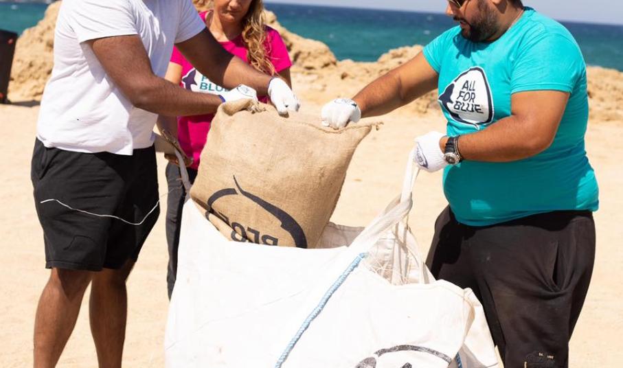Αρχικά, η ομάδα του All For Blue πραγματοποίησε καθαρισμό στην παραλία της Φτελιάς, με αφορμή την Παγκόσμια Ημέρα Καθαρισμού. Πρόκειται για ένα ετήσιο παγκόσμιο πρόγραμμα κοινωνικής δράσης που αποσκοπεί στην καταπολέμηση του παγκόσμιου προβλήματος στερεών αποβλήτων, συμπεριλαμβανομένου του προβλήματος των θαλάσσιων συντριμμιών.