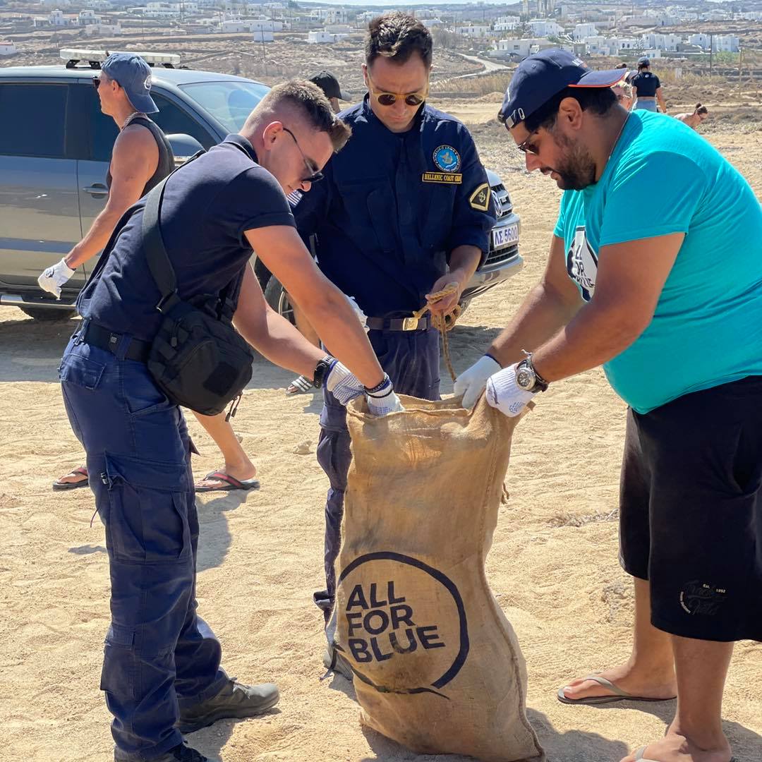 Στον καθαρισμό της Φτελιάς, μέριμνα για την ασφάλεια των εθελοντών, αλλά και ενεργό συμμετοχή στη δράση είχαν στελέχη του Λιμεναρχείου Μυκόνου.