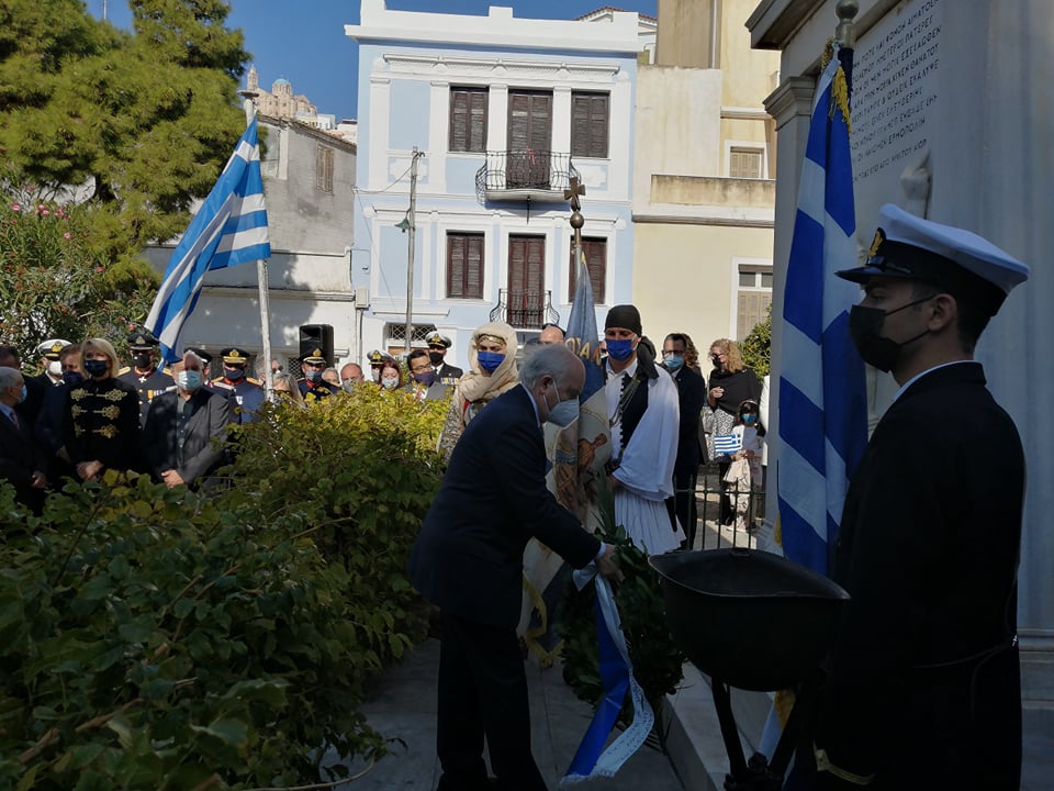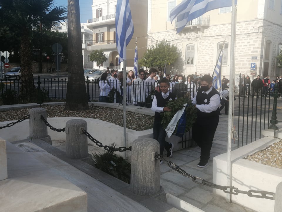 Παρουσία του Δημάρχου Σύρου – Ερμούπολης, Νίκου Λειβαδάρα πραγματοποιήθηκε η κατάθεση στεφάνων στο Ηρώο των Πεσόντων από μαθητές του ΕΠΑΛ Σύρου, του 4ου Πειραματικού Δημοτικού Σχολείου Ερμούπολης, του 5ου Δημοτικού Σχολείου Ερμούπολης, του Εσπερινού ΕΠΑΛ Σύρου και τους σπουδαστές και τις σπουδάστριες του Δημόσιου Ινστιτούτου Επαγγελματικής Κατάρτισης (ΔΙΕΚ) του Γενικού Νοσοκομείου Σύρου.
