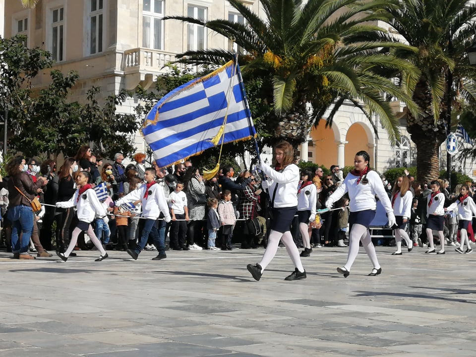 Η παρέλαση άνοιξε με το Λύκειο Ελληνίδων Σύρου, θεματοφύλακα των παραδόσεων και της Εθνικής μας κληρονομιάς. Προηγήθηκε η σημαία του Συνδέσμου Αναπήρων και Θυμάτων Πολέμου φερόμενη τιμητικά από νέους και νέες του Λ.Ε.Σ.