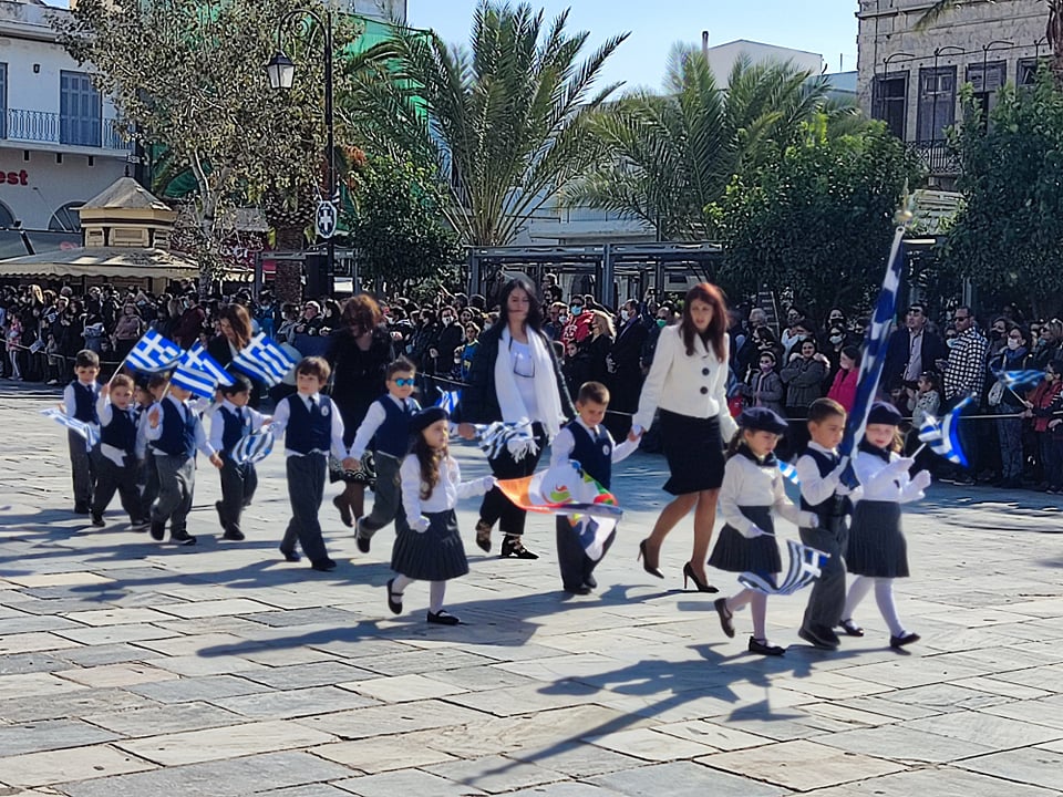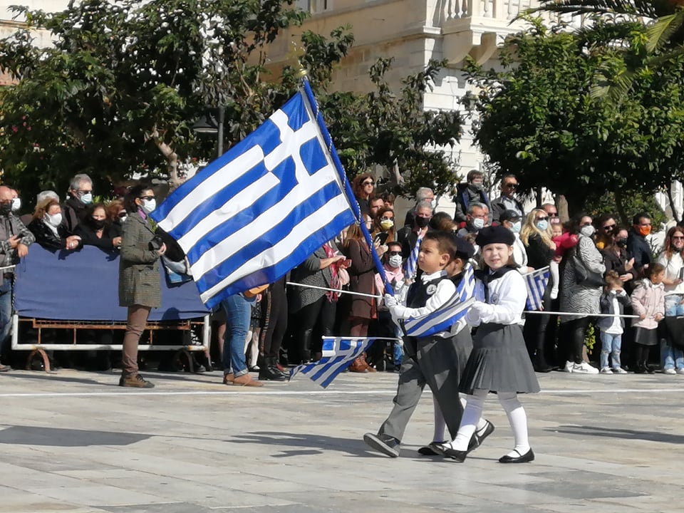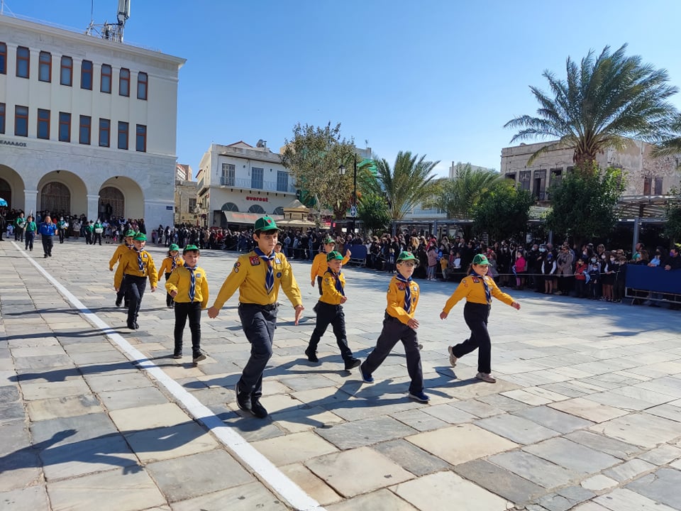 Οι επετειακές εκδηλώσεις στην πρωτεύουσα των Κυκλάδων κορυφώθηκαν και ολοκληρώθηκαν με τη μεγάλη παρέλαση στην πλατεία Μιαούλη, η οποία προκάλεσε ιδιαίτερη συγκίνηση στους παρευρισκόμενες πολίτες, καθώς μετά από ενάμιση χρόνο είχαν και πάλι την ευκαιρία να καμαρώσουν τους μαθητές και τις μαθήτριες, γιορτάζοντας όλη μαζί το ένδοξο παρελθόν και την ολοζώντανη ιστορία της πατρίδας μας.