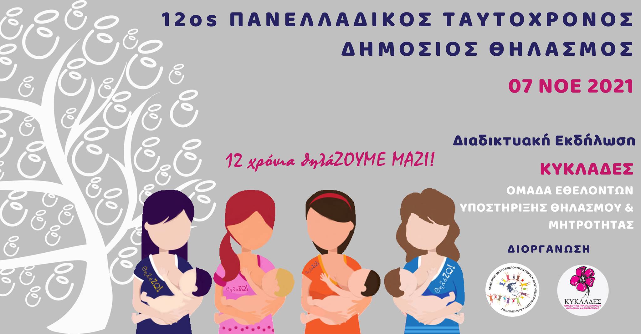 Στο πλαίσιο αυτό, η Ομάδα Εθελοντών Υποστήριξης Μητρικού Θηλασμού και Μητρότητας Κυκλάδων, τιμώντας την Εβδομάδα Μητρικού Θηλασμού, προσκαλεί γυναίκες από τα νησιά μας σε μια διαδικτυακή εκδήλωση-γιορτή που θα πραγματοποιηθεί την Κυριακή 7 Νοεμβρίου 2021 στις 11:00.