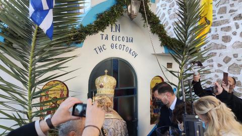 Παρουσία του Δημάρχου Σύρου - Ερμούπολης, κ. Νίκου Λειβαδάρα, εκπροσώπων των Σωμάτων Ασφαλείας, της αυτοδιοίκησης, του Βουλευτή Κυκλάδων της Ν.Δ., κ. Γιάννη Βρούτση, του Προέδρου του Επιμελητηρίου Κυκλάδων, κ. Γιάννη Ρούσσο, αλλά και πλήθους εργαζομένων στο ναυπηγείο της Σύρου καθώς και πιστών, τελέστηκαν από τον Σεβασμιώτατο Μητροπολίτη Σύρου, κ. Δωρόθεο Β', τα θυρανοίξια του Ι.Ν. Εισοδίων της Θεοτόκου εντός του χώρου των ONEX Syros Neorion Shipyards.