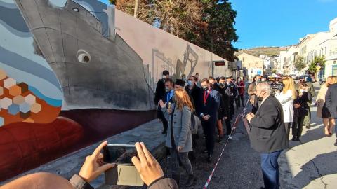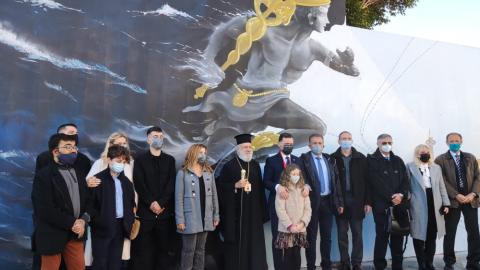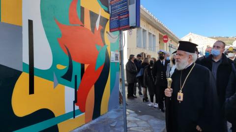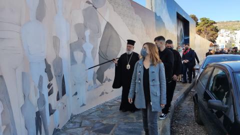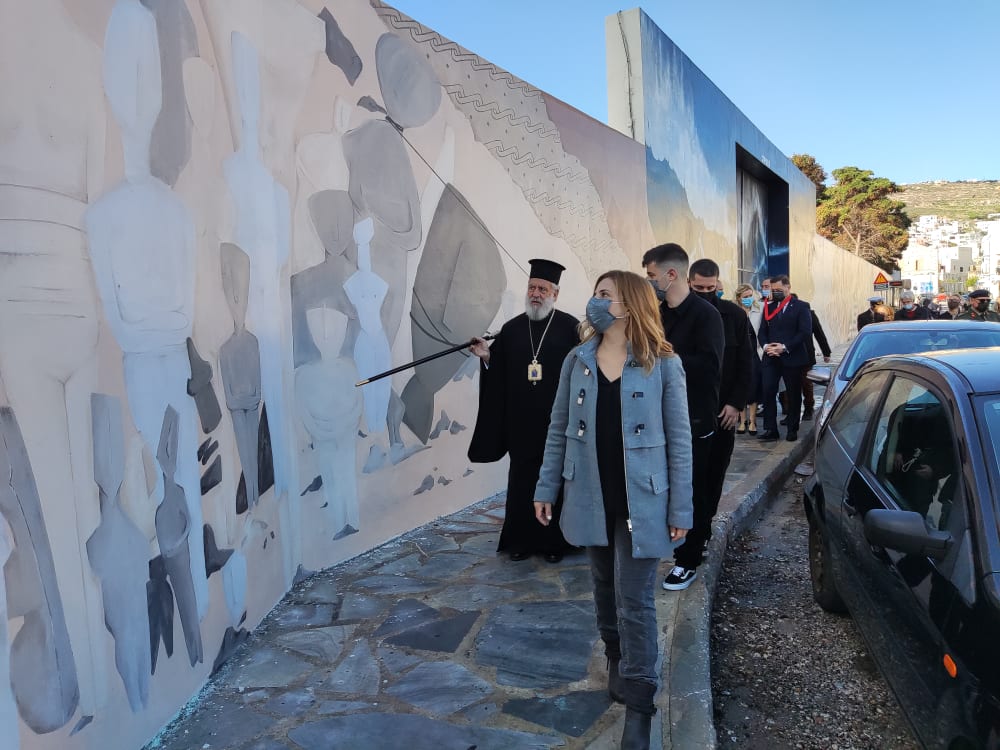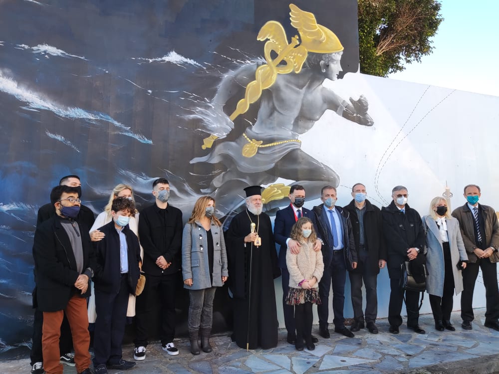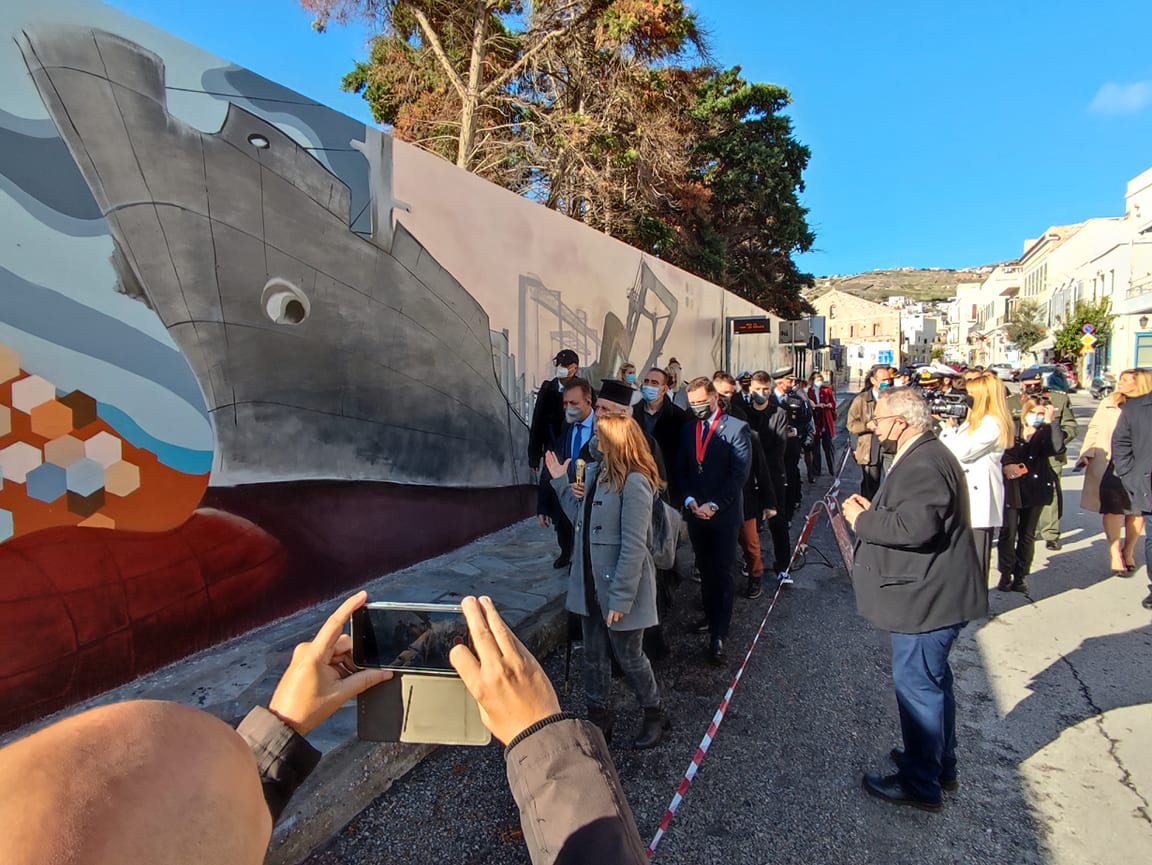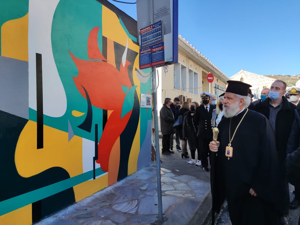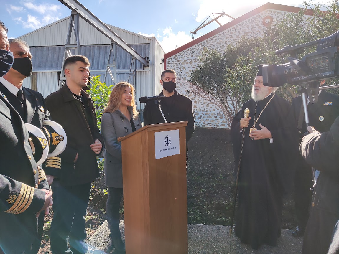 Παράλληλα, μετά την τέλεση και της Θείας Λειτουργίας, παρουσιάστηκαν από την κ. Ξενοκώστα τα μέλη της εικαστικής ομάδας «Crewns» με επικεφαλής την κ. Αγγελική Καραμολέγκου, που φιλοτέχνησαν το εικαστικό έργο που πλέον κοσμεί την δυτική όψη του ναυπηγείου, έπειτα από σχετικό διαγωνισμό που είχε διενεργήσει το καλλιτεχνικό-πολιτιστικό τμήμα της ΟΝΕΧ.
