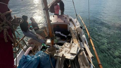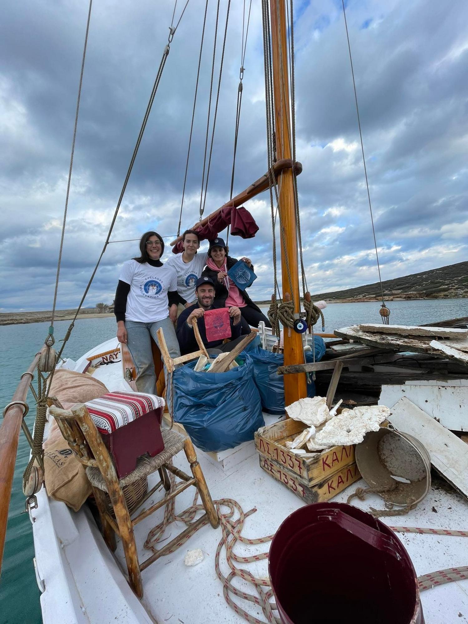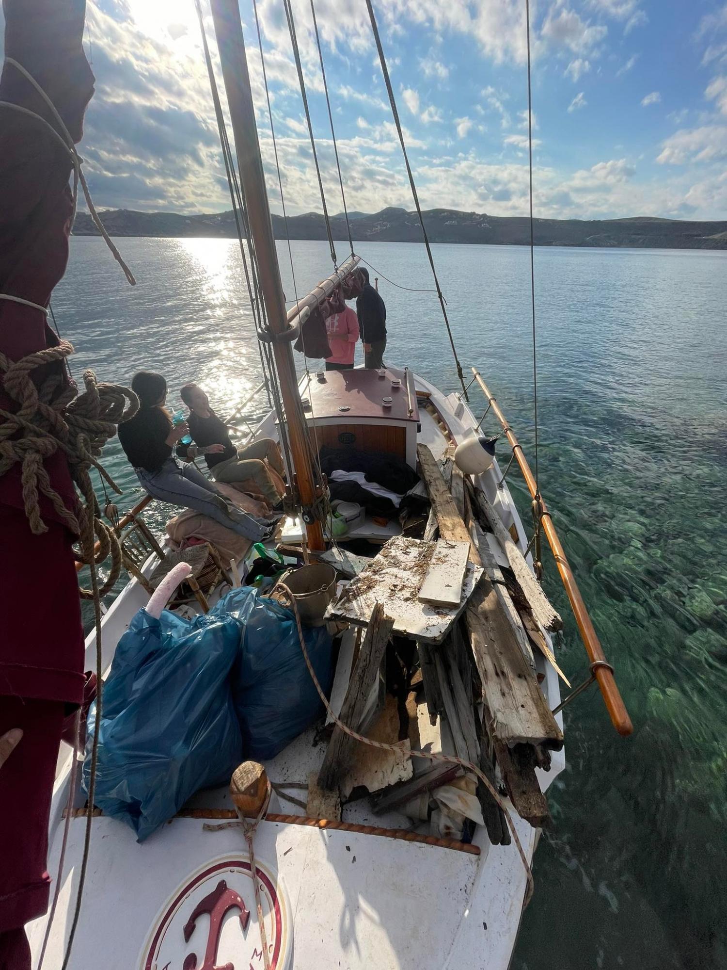 Με σύμμαχο τον καλό καιρό και την ακόμα καλύτερη διάθεση των εθελοντών, 80 περίπου κιλά πλαστικών και λοιπών απορριμμάτων απομακρύνθηκαν από την περιοχή με τη βοήθεια του παραδοσιακού  Συριανού καϊκιού  «ΚΑΛΛΙΑ Μ.».