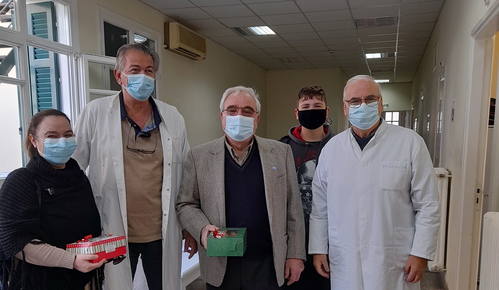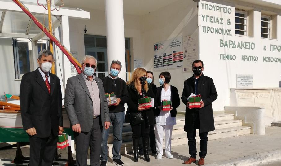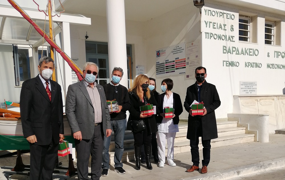Την Παρασκευή 24 Δεκεμβρίου ο Πρόεδρος του Ροταριανού Ομίλου Ερμουπόλεως και το μέλος Δέσποινα Βούρτση επισκέφτηκαν το Εμβολιαστικό Κέντρο του Κ.Υ. –Μ.Υ Ερμούπολης, όπου ευχήθηκαν στο προσωπικό χρόνια πολλά, υγεία και δύναμη για να επιτελούν το επίπονο έργο τους προκειμένου να έχουμε ένα καλύτερο αύριο. Παράλληλα τους προσέφεραν τα πατροπαράδοτα γλυκά κουραμπιέδες και μελομακάρονα .