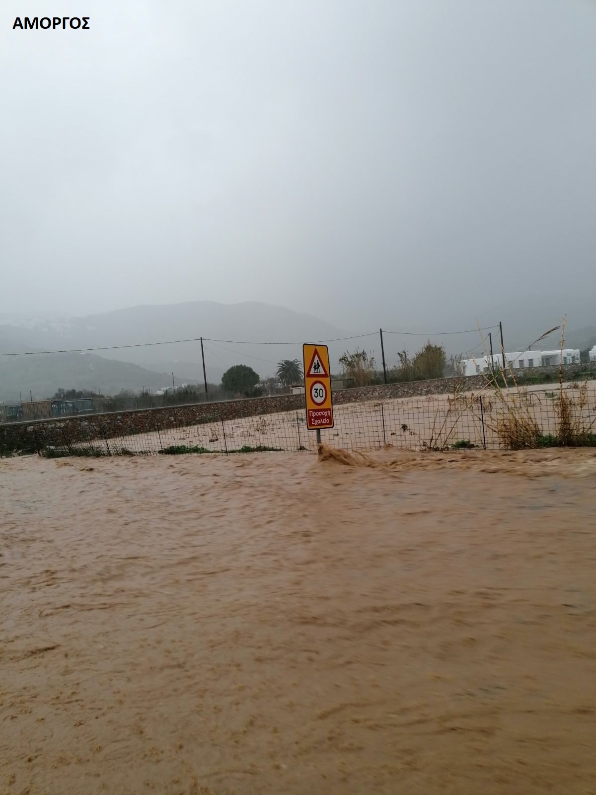 Ιδιαίτερα αυξημένος υπήρξε ο κίνδυνος στο νησί της Αμοργού, όπου υπήρξαν πλημμυρικά φαινόμενα.