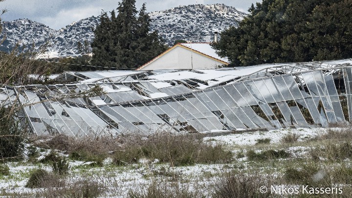 Προκλήθηκαν όμως πολύ μεγάλες ζημιές σε θερμοκήπια. Καταστράφηκαν πρόχειρα υπόστεγα σε μάντρες και καταπλακώθηκαν τα αιγοπρόβατα», είπε.