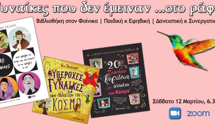 Η κοινοτική Βιβλιοθήκη στον Φοίνικα, Παιδική κ Εφηβική, Δανειστική και Συνεργατική συμμετείχε στις εκδηλώσεις της Επιτροπής Ισότητας του Δήμου Σύρου-Ερμούπολης για την Ημέρα της Γυναίκας διοργανώνοντας διαδικτυακή εκδήλωση με αφορμή βιβλία που μιλάνε για σημαντικές γυναίκες, το Σάββατο 12 Μαρτίου 2022, στις 6.30 το απόγευμα και με διάρκεια περίπου μία ώρα.