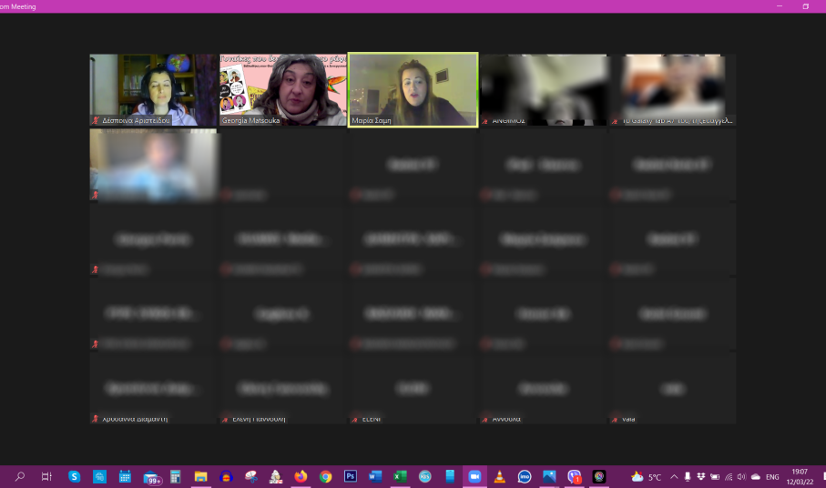Παίξαμε ένα παιχνίδι γνώσεων διαδικτυακά, με αντίπαλο τον υπολογιστή, με πληροφορίες από το βιβλίο «30 γυναίκες που άλλαξαν τον κόσμο και πώς μπορείς να τον αλλάξεις κι εσύ» (γραμμένο για εφήβους). Ο υπολογιστής ήταν πολύ πιο γρήγορος και μας κέρδισε, αδικία… Σε μια επόμενη συνάντηση, θα πάρουμε την ρεβάνς!