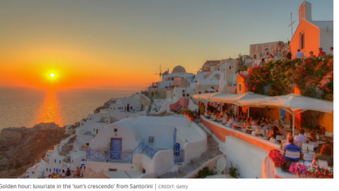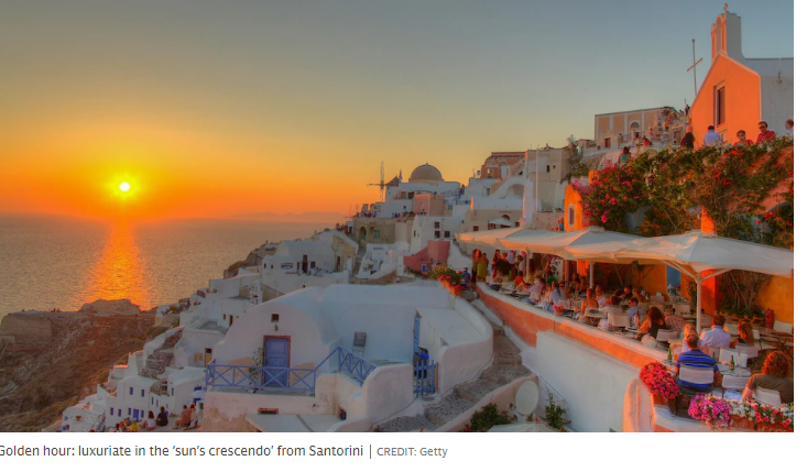Παράλληλα, η ίδια εφημερίδα, την 1η Απριλίου, δημοσίευσε στην ταξιδιωτική της στήλη άρθρο, με τίτλο «Κατάρριψη των μύθων πίσω από το τέλειο ηλιοβασίλεμα και τα καλύτερα μέρη στον κόσμο για να το δεις». Φυσικά, από τη συγκεκριμένη αναφορά του βρετανικού Telegraph δεν θα μπορούσε να λείπει η Σαντορίνη. Στο πλαίσιο του άρθρου, το οποίο αναφέρεται κυρίως στα «μυστικά» των ταξιδιωτών, ώστε να αποτυπώσουν όσο το δυνατόν καλύτερα το μαγευτικό ηλιοβασίλεμα στον τόπο που θα επισκεφτούν, ο διεθνούς φήμης βραβευμένος φωτογράφος, Robert McCabe, αναφέρει στον Telegraph, ότι η Σαντορίνη υπήρξε το φόντο, για την καλύτερη ίσως φωτογραφία ηλιοβασιλέματος για τον ίδιο. «Όλοι σπεύδουν στην κορυφή της καλντέρας, ώστε να πάρουν θέση και να το απολαύσουν. Είναι υπέροχη εμπειρία με ένα ποτό στο χέρι», ανέφερε ο φωτογράφος.