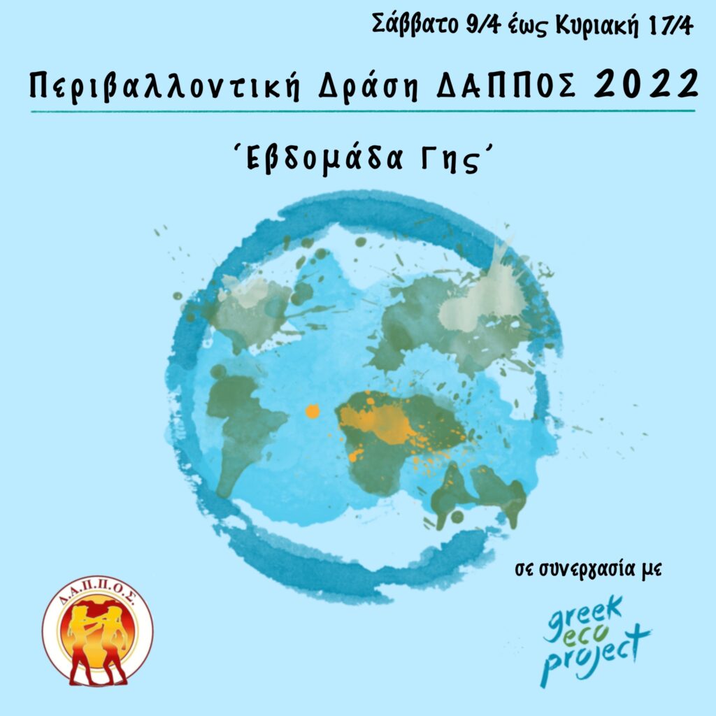 Από το Σάββατο 9 Απριλίου 2022 έως και την Κυριακή 17 Απριλίου 2022 πραγματοποιήθηκαν οικολογικές δράσεις, ομιλίες, παιχνίδια και περιβαλλοντικά εργαστήρια ως επί το πλείστον για παιδιά, έχοντας ως στόχο την ενίσχυση της οικολογικής συνείδησης των δημοτών και κυρίως της νέας γενιάς που αποτελεί την ελπίδα μας για έναν καλύτερο και πιο όμορφο κόσμο.
