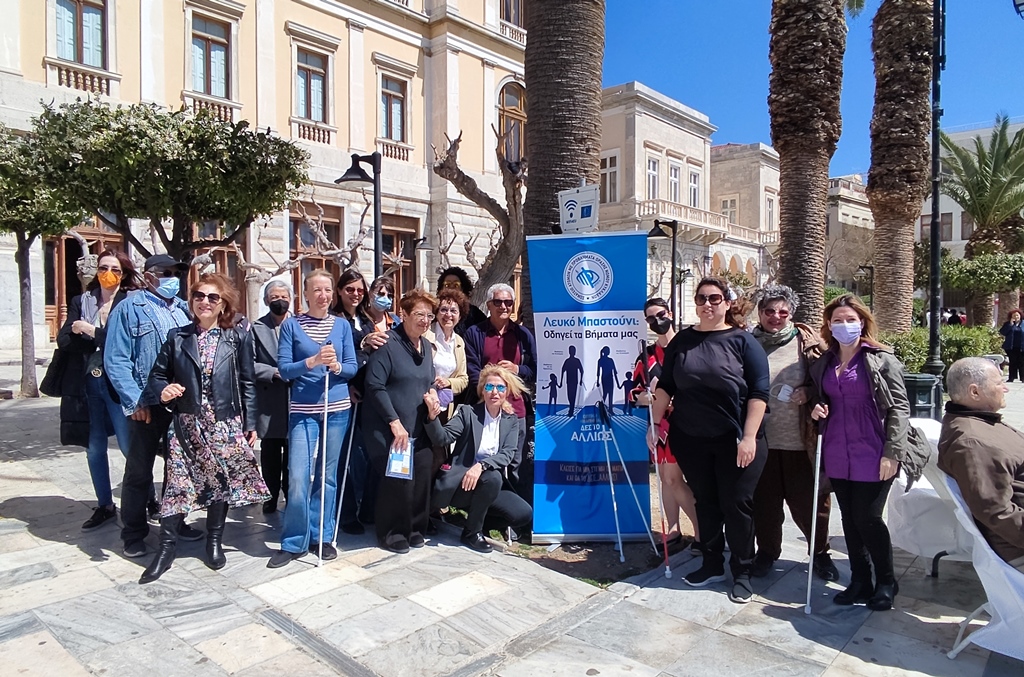 Με φόντο το εξαιρετικής αρχιτεκτονικής Δημαρχιακό Μέγαρο και την Κεντρική Πλατεία της Ερμούπολης, γυρίστηκε το 7λεπτο video της ΑΡΩΓΗΣ,  που αποτυπώνει με επίγειες και εναέριες λήψεις Drone, την εκπαίδευση Συριανών Εθελοντών και Εθελοντριών Συνοδών στις τεχνικές συνοδείας ατόμων με οπτική αναπηρία.