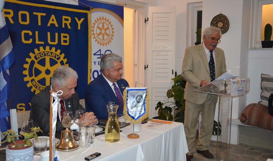 Σε φιλικό κλίμα πραγματοποιήθηκε την Παρασκευή το βράδυ, στο ξενοδοχείο Benois στον Γαλησσά, η εκδήλωση του Ροταριανού Ομίλου Ερμούπολης. Αφορμή για αυτήν τη συγκέντρωση ήταν η επίσημη επίσκεψη του νέου διοικητή της 2475 Ροταριανής Περιφέρειας του Διεθνούς Ρόταρυ, η αλλαγή ηγεσίας του Ομίλου και η βράβευση της κας Μαρίας Ξυπολιά για την εθελοντική της προσφορά.