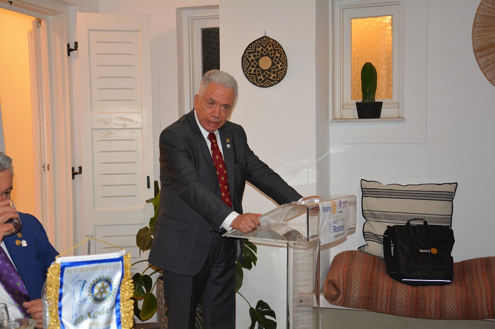 Ο νέος Διοικητής του Ρόταρυ Ελλάδος, κος Ιωάννης Κατσόγιαννης, λίγο μετά το πέρας της εκδήλωσης, δήλωσε στην “Κοινή Γνώμη” για την επίσκεψή του στη Σύρο: “Κάθε διοικητής, κάθε χρονιά, αναλαμβάνει την υποχρέωση να γνωρίσει όλους τους ομίλους από κοντά. Να τους επισκεφθεί και να συζητήσει μαζί τους το πρόγραμμα δράσης τους.. Η πρώτη μου επίσκεψη φέτος είναι η Σύρος όπου βρέθηκα με τους αγαπητούς συναδέλφους, με τους οποίους συζητήσαμε τις δράσεις που κάνουν και πρόκειται να κάνουν. Ξεκίνησα από την Ερμούπολη επειδή έχω μια ιδιαίτερη συμπάθεια κι ευαισθησία για το νησί σας. Εκτιμώ και το νησί και τους Συριανούς που είναι ξεχωριστοί άνθρωποι και καλοσυνάτοι με έναν κοινωνικό πολιτισμό επιπέδου. Για πρώτη φορά φέτος το Ρόταρυ θα είναι ένα για όλη την Ελλάδα. Ενώ μέχρι τώρα είχαμε δύο περιφέρειες, πλέον θα έχουμε μια ενιαία περιφέρεια, με ενιαία δράση και συντονισμό. Οι Ρόταρυ αγαπάμε τον συνάνθρωπο, κάνουμε κοινωνικό έργο και είμαστε εθελοντές χωρίς αντάλλαγμα. Θέλουμε απλώς να προσφέρουμε, αυτή είναι η φιλοσοφία μας”.