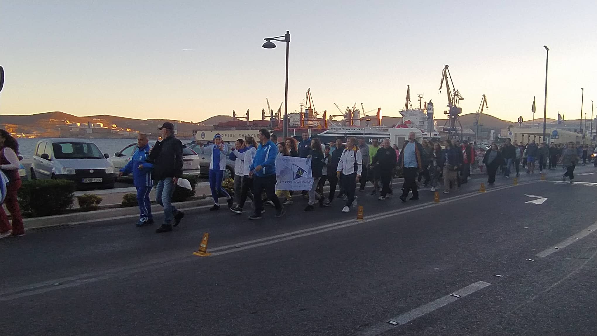 Το απόγευμα του Σαββάτου, 22 Οκτωβρίου, οι Ολυμπιονίκες και ελάχιστοι κάτοικοι της Σύρου συγκεντρώθηκαν στο κλειστό κολυμβητήριο από όπου ξεκίνησε μία συμβολική πορεία δύο χιλιομέτρων μέχρι την πλατεία Μιαούλη, με μία ενδιάμεση στάση στο άγαλμα της Εθνικής Αντιστάσεως, όπου οι Ολυμπιονίκες ξεδίπλωσαν την ελληνική σημαία και την μετέφεραν μέχρι το Δημαρχείο, υπό τους ήχους του Ολυμπιακού ύμνου. Εκεί, τοπικοί φορείς δαφνοστεφάνωσαν τους Ολυμπιονίκες και στη συνέχεια, όλοι μαζί, μοίρασαν πιστοποιητικά συμμετοχής στους παρευρισκόμενους. Η εκδήλωση, η οποία πραγματοποιήθηκε για δεύτερη φορά στη Σύρο, είχε σκοπό να ενημερώσει και να ευαισθητοποιήσει τους πολίτες για το δημογραφικό πρόβλημα της χώρας.