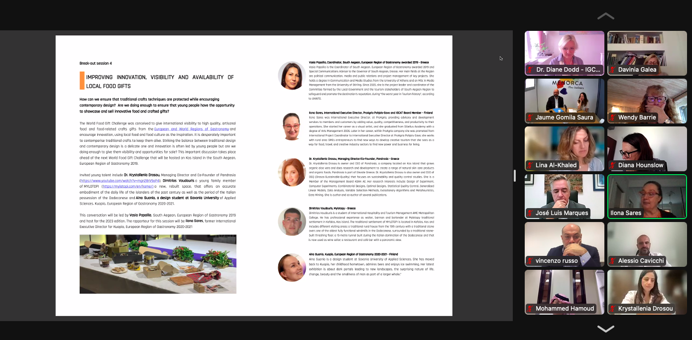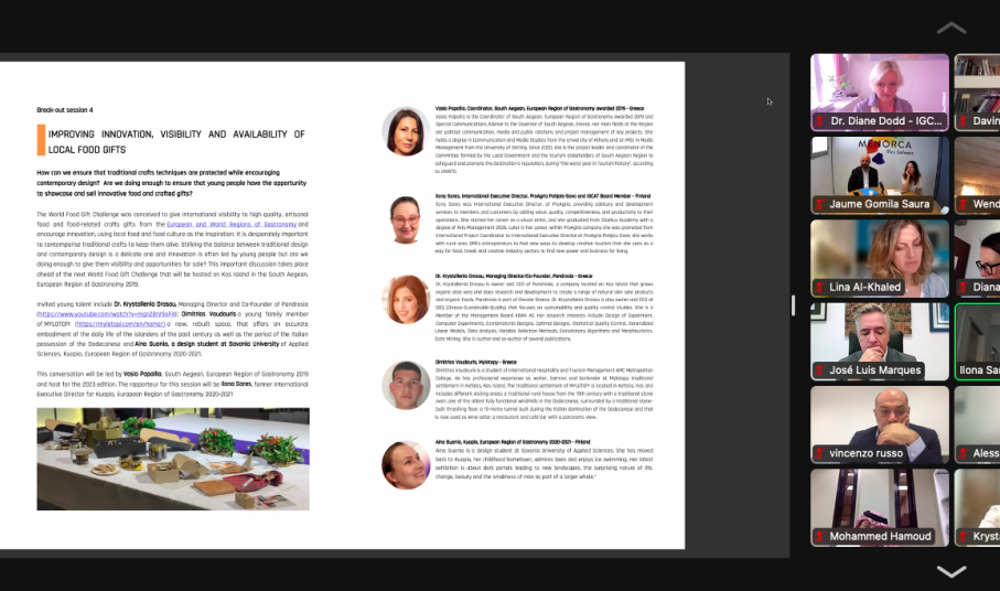 Η Περιφέρεια Νοτίου Αιγαίου-Ευρωπαϊκή Περιφέρεια Γαστρονομίας 2019 συμμετείχε στο διαδικτυακό σεμινάριο «Engaging Young Minds», που διοργάνωσε το Διεθνές Ινστιτούτο Γαστρονομίας, Τουρισμού, Πολιτισμού και Τεχνών IGCAT, στο πλαίσιο της ετήσιας σύσκεψης των ειδικών της γαστρονομίας, τουρισμού και πολιτισμού και των εκπροσώπων των Ευρωπαϊκών και Διεθνών Περιφερειών που απαρτίζουν το εν λόγω Δίκτυο.