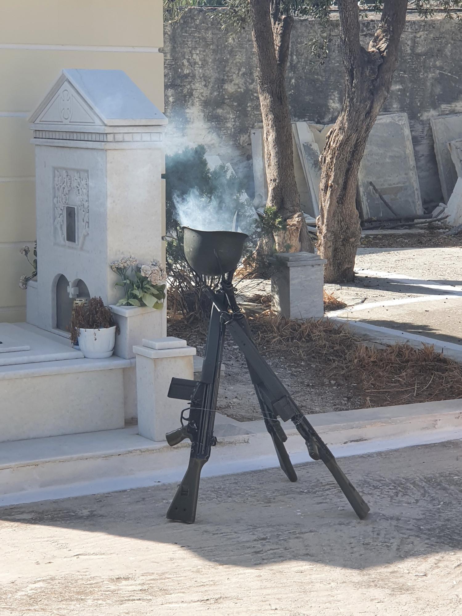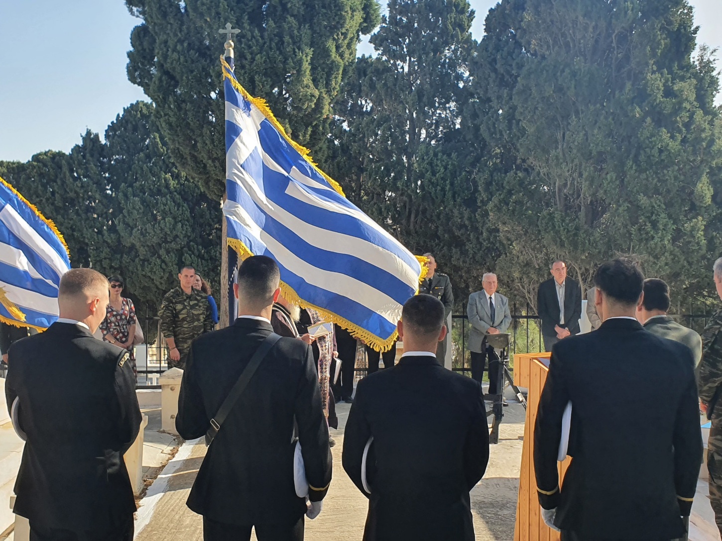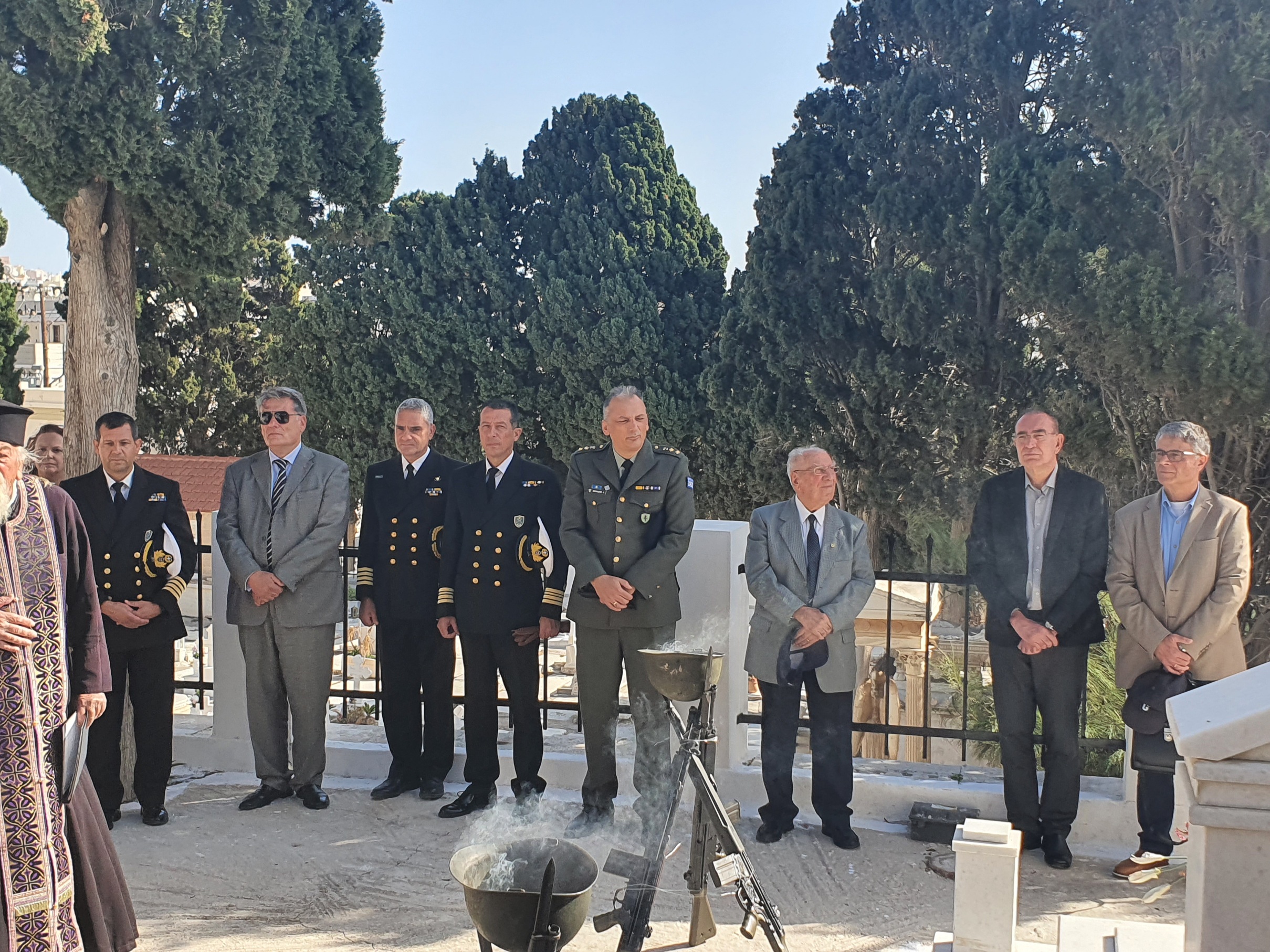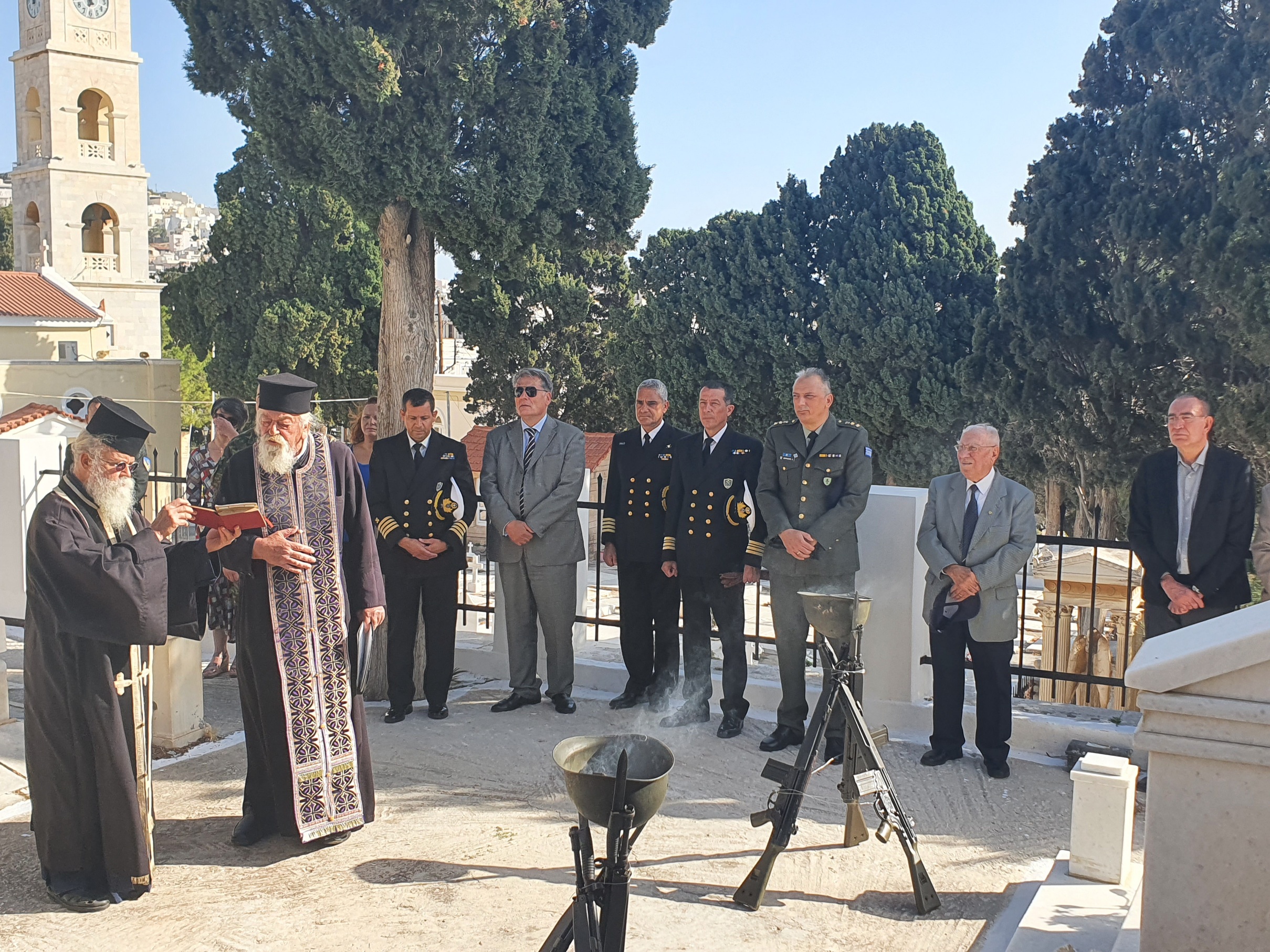 Πραγματοποιήθηκε επίσης προσκλητήριο νεκρών και κατατέθηκε στεφάνι από τον Ανώτερο Διοικητή Φρουράς Σύρου.