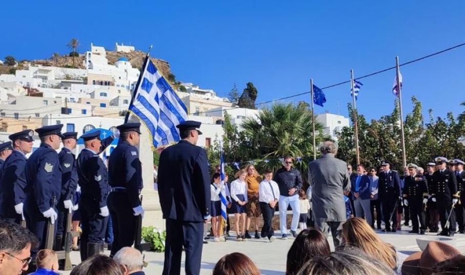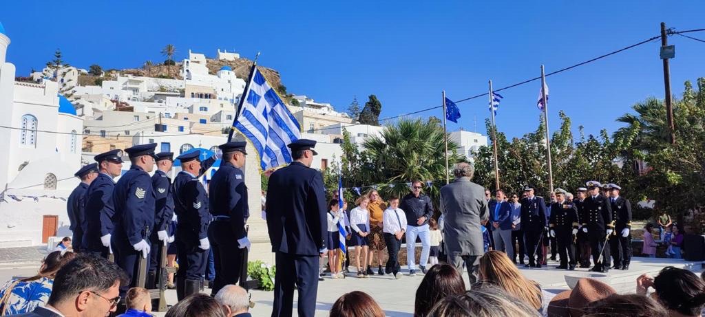 Στην Ίο για πρώτη φορά την παρέλαση τίμησαν με τη συμμετοχή τους, οι αστυνομικοί του νησιού που βημάτισαν μαζί με τους μαθητές και με αυτό τον τρόπο απότισαν φόρο τιμής στους πεσόντες. Ανάλογες οι εκδηλώσεις και σε Σέριφο, Σίκινο, Ανάφη, Αντίπαρο, Κίμωλο, Κύθνο και Σίφνο.