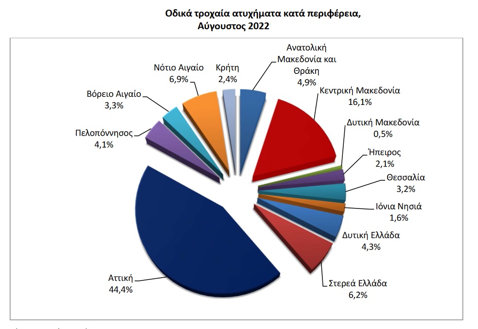 Η Ελληνική Στατιστική Αρχή (ΕΛΣΤΑΤ) ανακοινώνει τα προσωρινά1 στοιχεία της έρευνας για τα οδικά τροχαία ατυχήματα, μηνός Αυγούστου 2022.