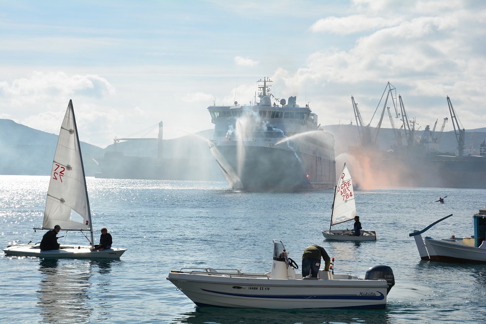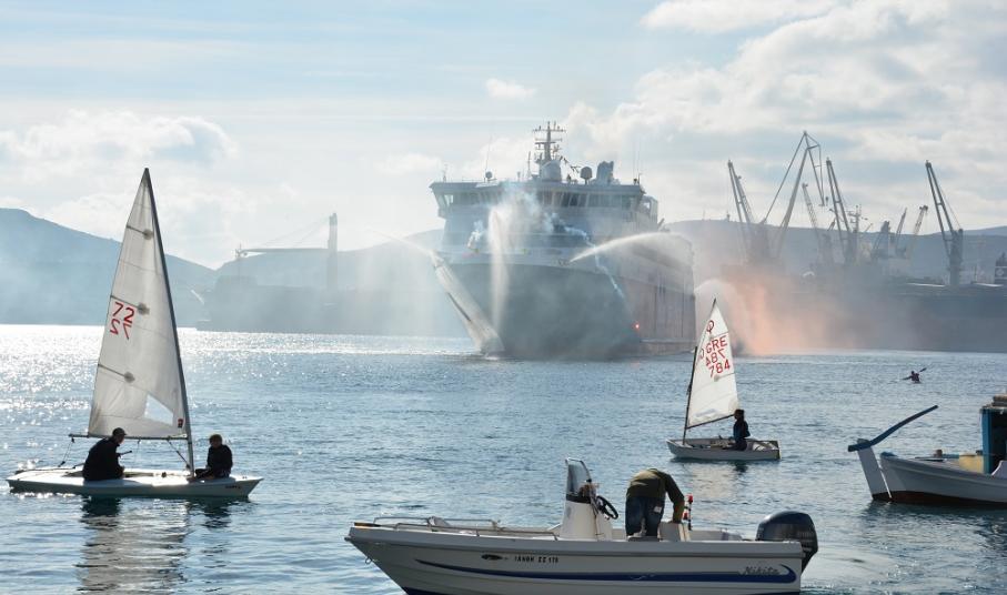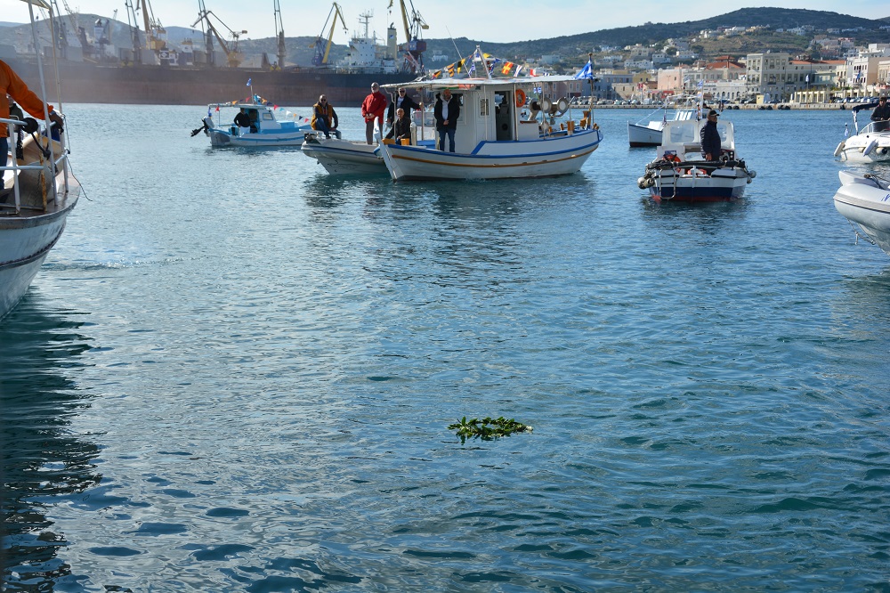 Στη συνέχεια, η περιφορά της εικόνας κατευθύνθηκε προς την πλατεία Κανάρη όπου έγινε ρίψη στεφάνων στη θάλασσα από εκπροσώπους της εκκλησίας, της πολιτικής και του Λιμενικού, στη μνήμη των πνιγέντων ναυτικών.
