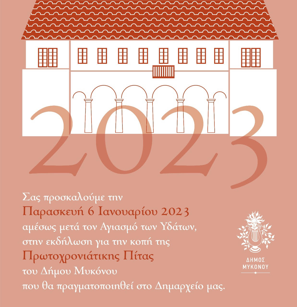Kοπή Πρωτοχρονιάτικης πίτας του Δήμου Μυκονου, την Παρασκευή 6 Ιανουαρίου αμέσως μετά τον αγιασμό των υδάτων
