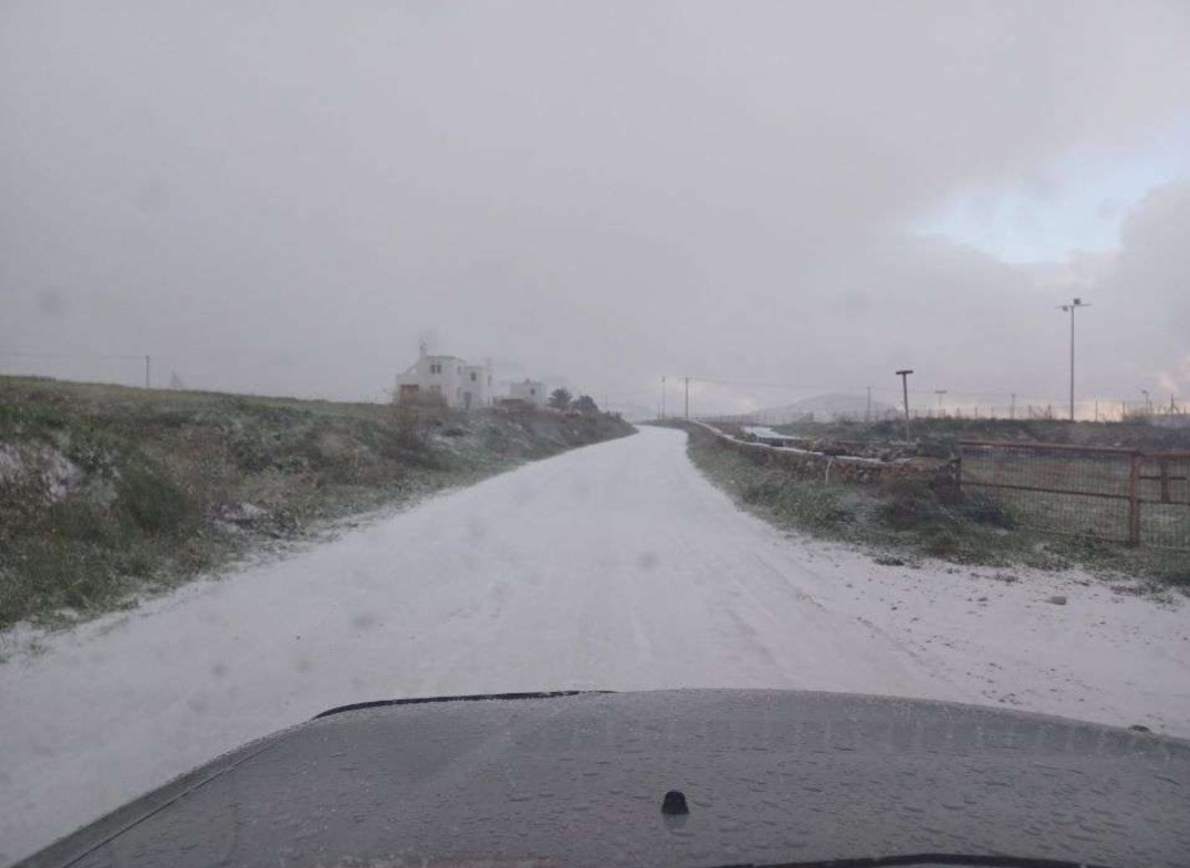 Χαρακτηριστικά στην επικοινωνία μας ανέφερε, "Τα φαινόμενα σήμερα είναι πολύ έντονα. Η χιονόπτωση φτάνει μέχρι και τη θάλασσα" ενώ παράλληλα μας μίλησε για τις προσπάθειες των συνεργείων στους δρόμους του νησιού, "Επιχειρούμε σε 3 τμήματα του επαρχιακού οδικού δικτύου και συγκεκριμένα στο Μοναστήρι - Πεντόστρατο - Φαλατάδο - Μουντάδο - Τριπόταμο - Τριαντάρο - Δύο Χωριά και Αρνάδο, που τα φαινόμενα είναι πολύ έντονα."