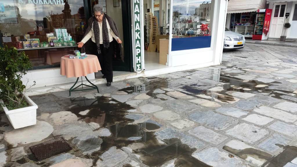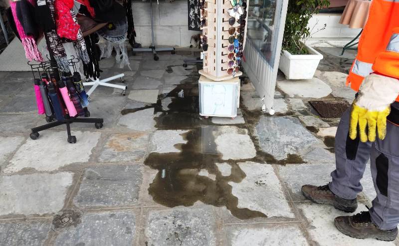 Μπροστά σε μία δυσάρεστη έκπληξη βρέθηκαν το πρωί του Σαββάτου οι καταστηματάρχες στο κέντρο της Ερμούπολης, όταν είδαν λύματα να πλημμυρίζουν το πεζοδρόμιο μπροστά από τις επιχειρήσεις τους.