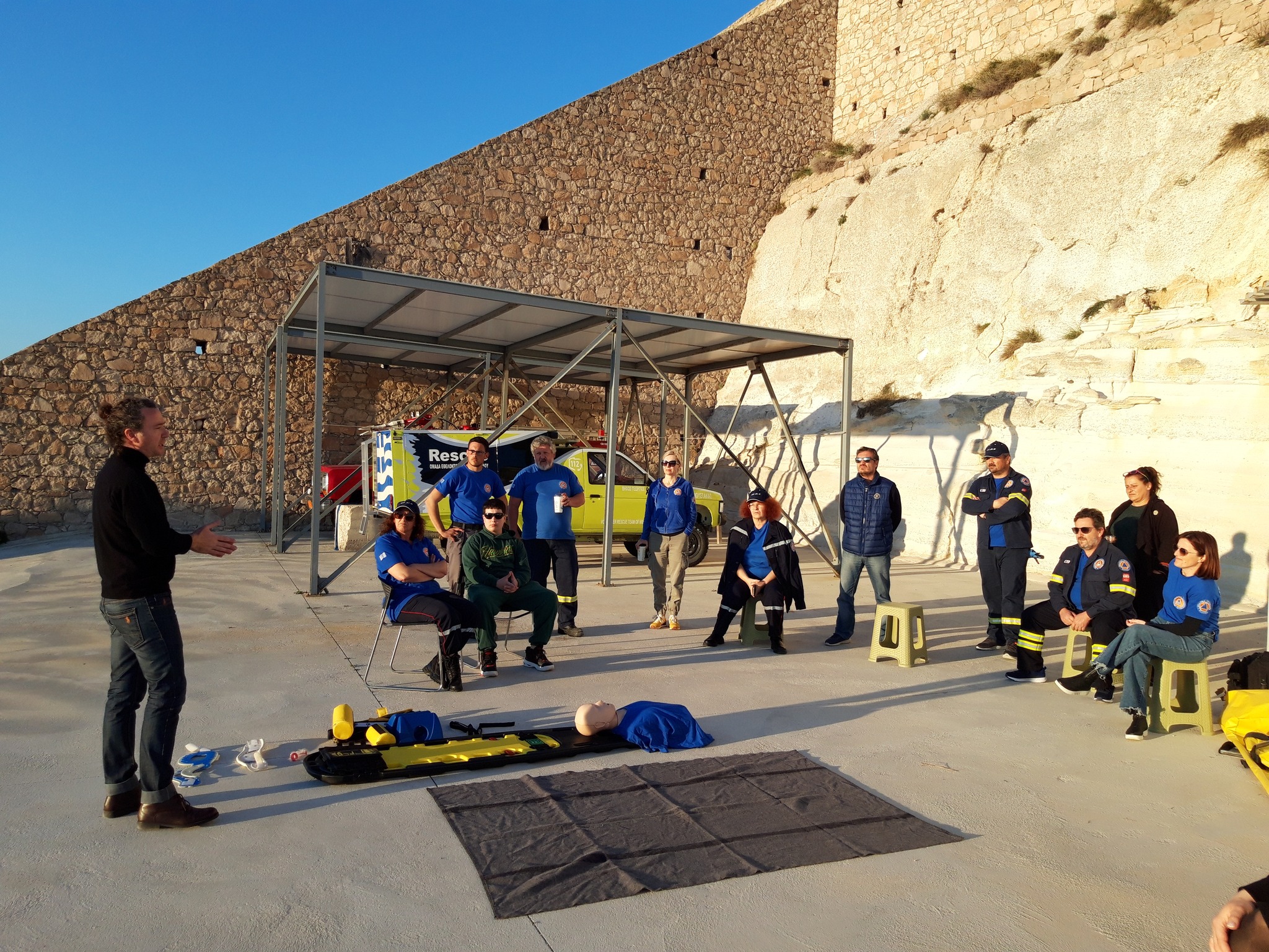 Στην συνέχεια, στάθηκε στο πόσο σημαντικό είναι το κομμάτι της εκπαίδευσης, “Σε καμία δράση της ομάδας δεν έρχεται μέλος, το οποίο δεν είναι εκπαιδευμένο στο συγκεκριμένο κομμάτι. Είτε αυτό είναι δασοπυρόσβεση, είτε αυτό είναι δασική πυρκαγιά, είτε είναι τεχνική διάσωση, είτε είναι πρώτες βοήθειες. Στο κομμάτι των πρώτων βοηθειών καλύπτουμε και εκδηλώσεις που γίνονται στο νησί όπως συναυλίες και πανηγύρια. Υπάρχει κόσμος που θα έρθει να βοηθήσει εθελοντικά χωρίς να είναι εκπαιδευμένος απλά εμείς προσπαθούμε να μην τους τοποθετήσουμε στην πρώτη γραμμή της αντιμετώπισης του προβλήματος και αυτό δεν γίνεται μόνο για νομικούς λόγους αλλά και για λόγους ασφαλείας. θα προτιμήσουμε να τον τοποθετήσουμε σε σημείο ώστε να κλείσει κάποιο δρόμο ή να κρατήσει τον κόσμο μακριά από κάποιο περιστατικό.