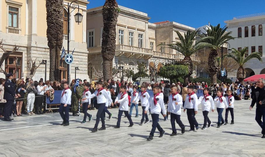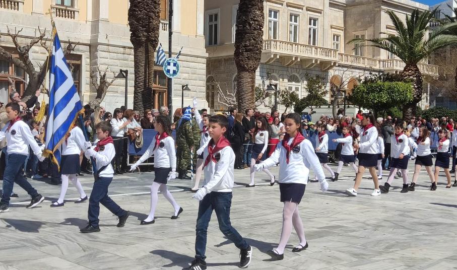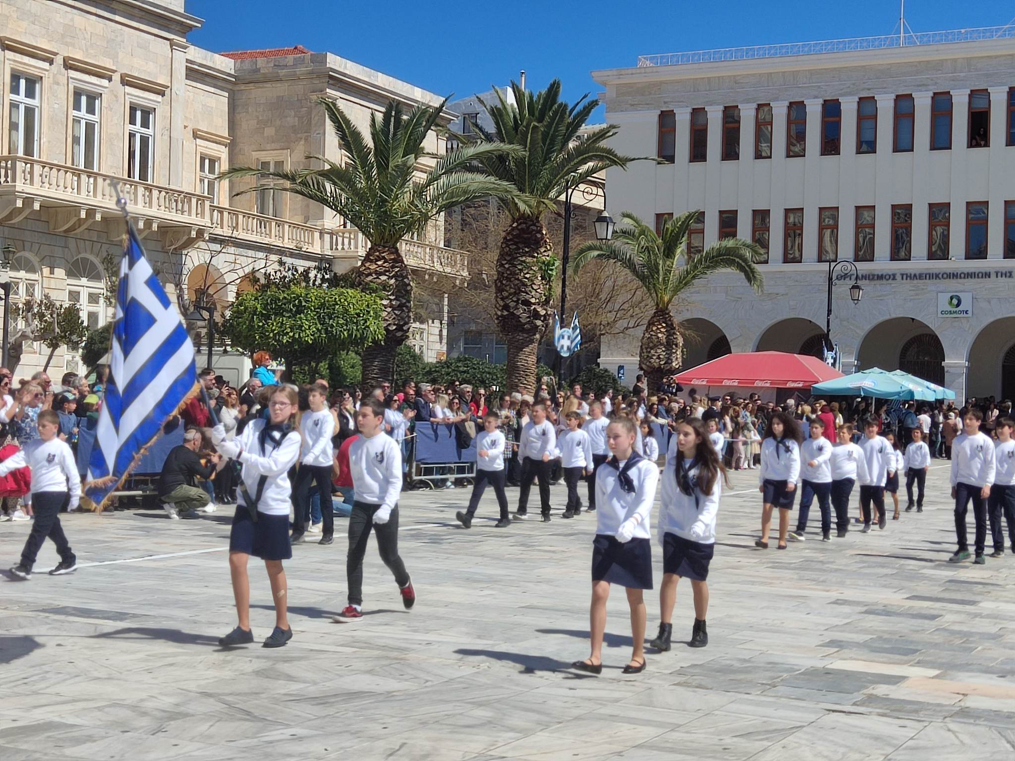 Μαθητές, σπουδαστές, πρόσκοποι και εκπρόσωποι από το ΤΕΘ Ερμούπολης παρέλασαν στη Σύρο σήμερα το πρωί, με υπερηφάνεια, γιορτάζοντας και τιμώντας τον Αγώνα του ΄21, για μία ελεύθερη Ελλάδα.