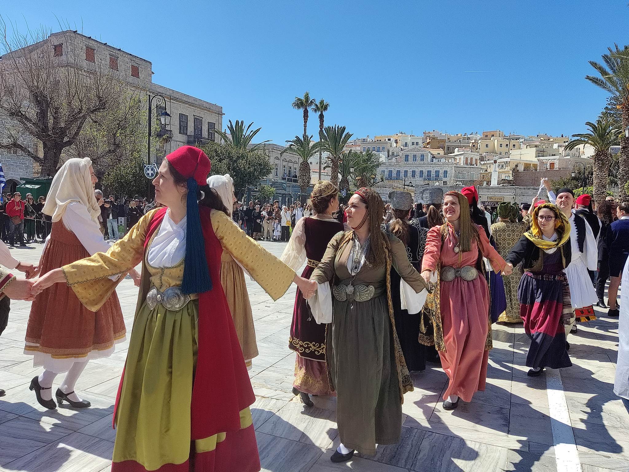 Σύμμαχος φέτος υπήρξε ο καλός καιρός, ενώ ακολούθησαν παραδοσιακοί χοροί από χορευτικούς Συλλόγους της Σύρου και του Λυκείου Ελληνίδων Σύρου.